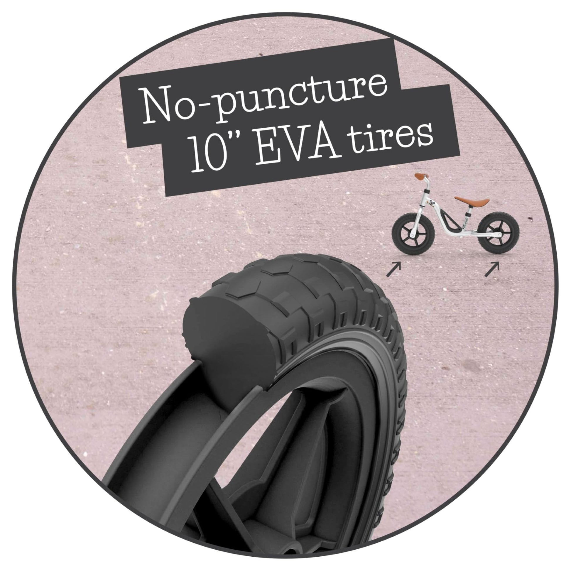 - No-Inflate 10-Inch EVA Tires – Enjoy worry-free rides with puncture-proof, 10-inch EVA foam tires. These durable, no-inflate tires make this bike ready for any adventure, available in multiple vibrant colors.