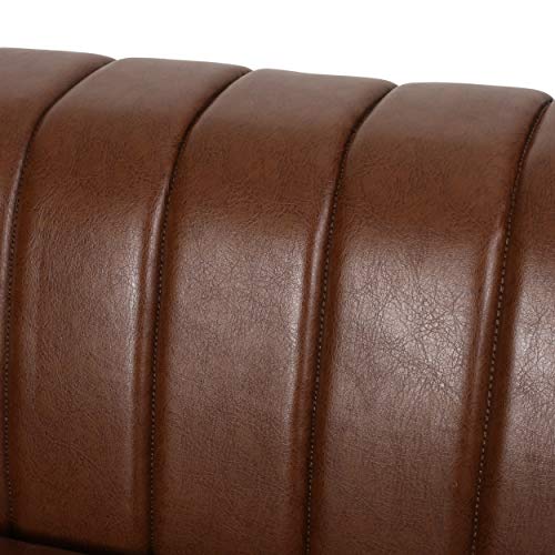 Christopher Knight Home Drury Channel Stitch 3 Seater Sofa with Nailhead Trim - Cognac Brown/Dark Brown