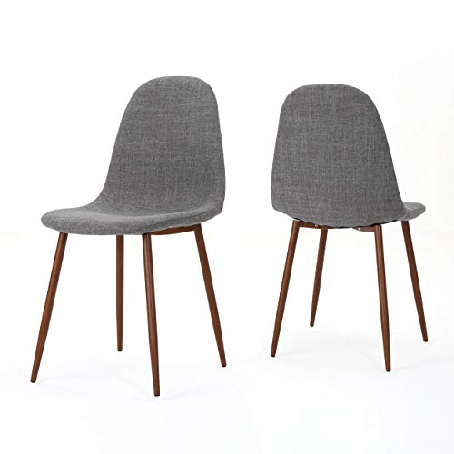 Christopher Knight Home Raina Mid-Century Modern Fabric Dining Chairs with Wood Finished Metal Legs, 2-Pcs Set, Light Grey / Dark Brown