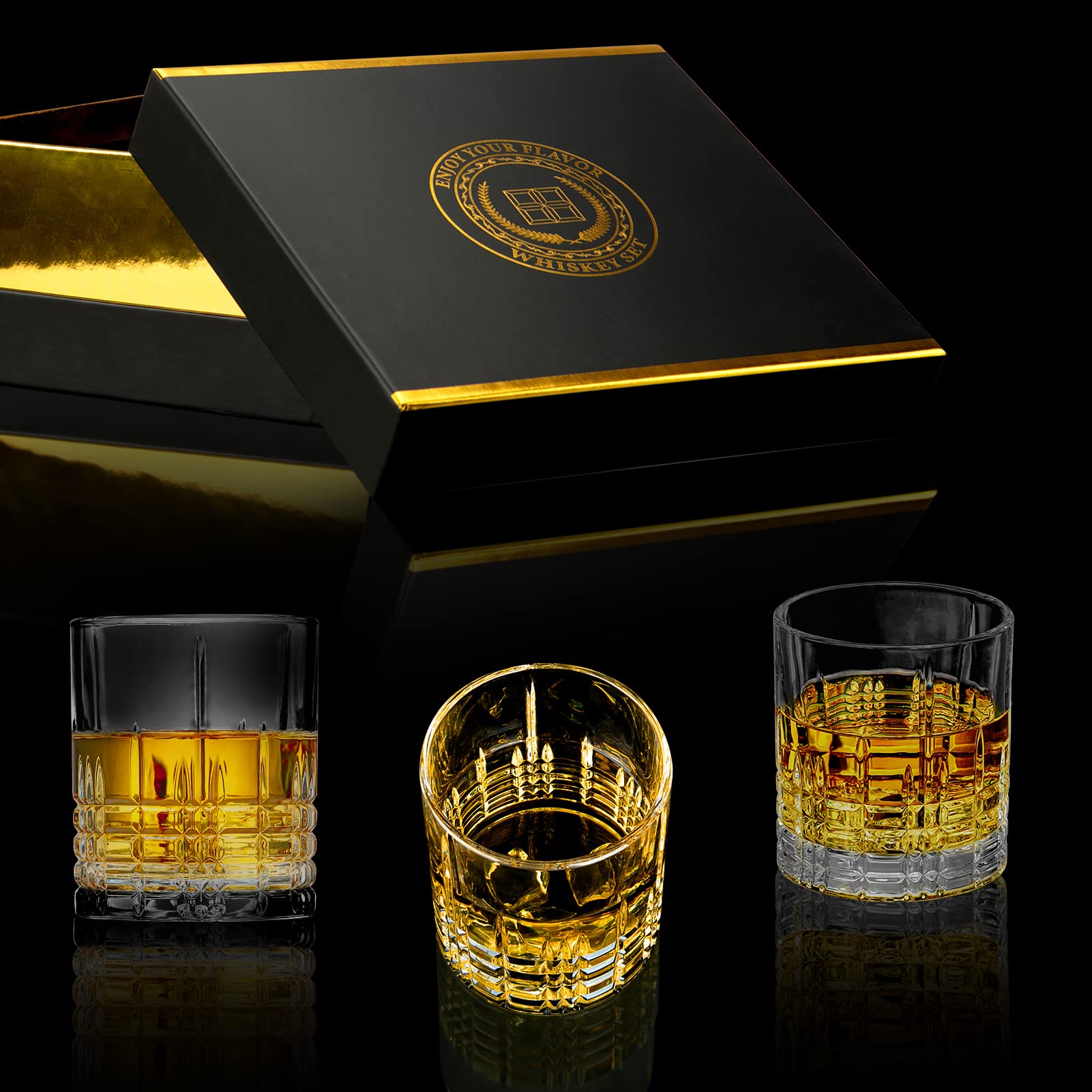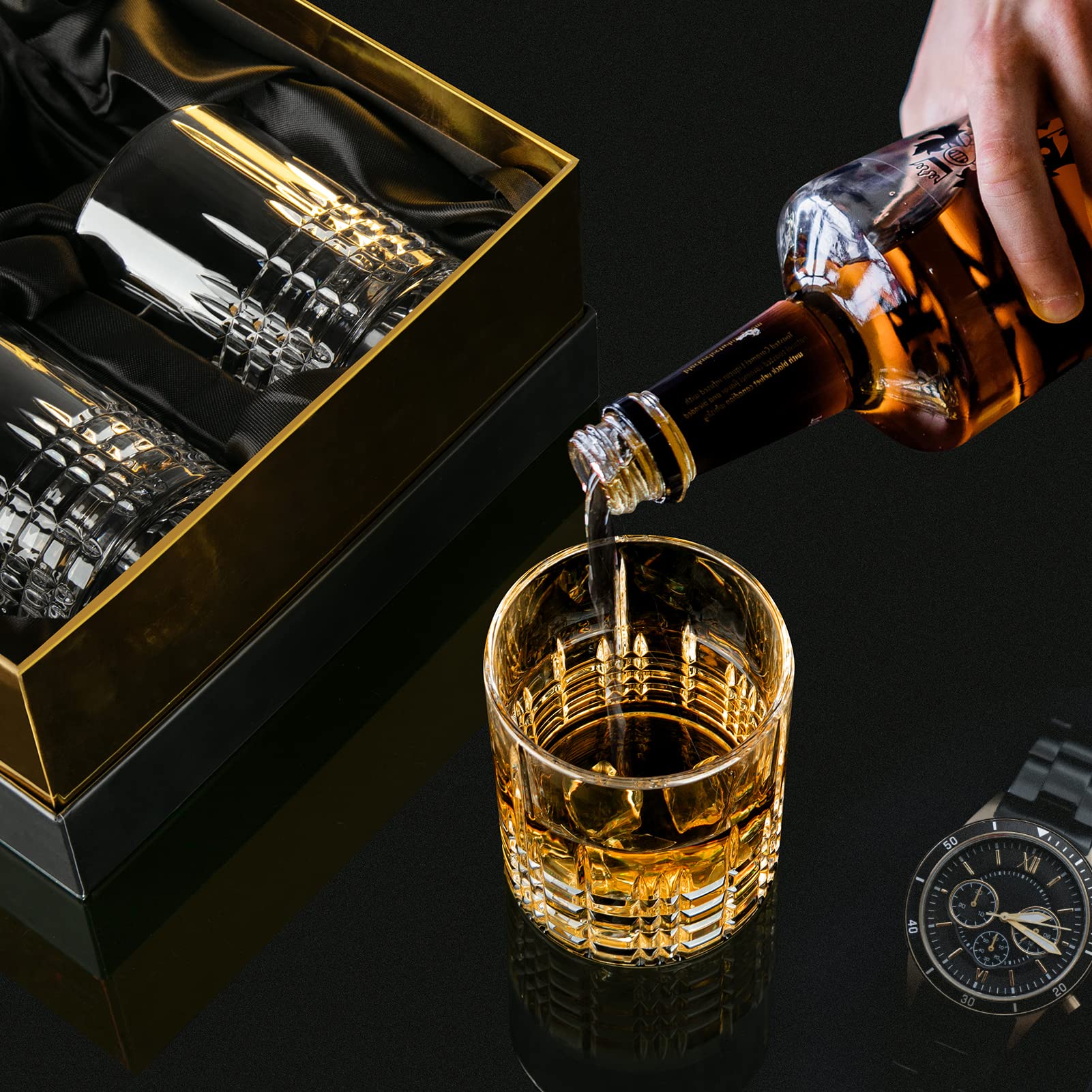 - Crystal Old Fashioned Whiskey Glasses Set: Original high quality crystal glass, Diamond-like detailing for texture and brilliant refraction, increases the taste of whiskey. Blown from solid crystal they sparkle beautifully in the light.