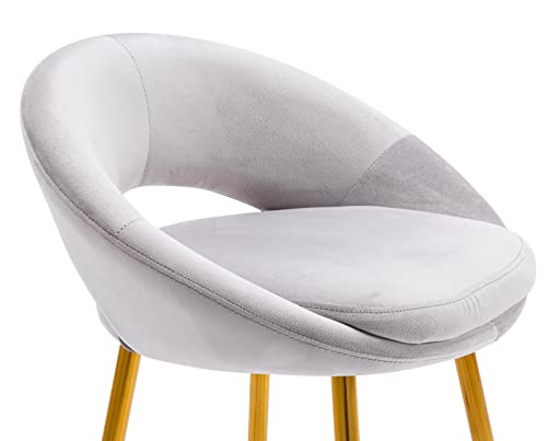 CIMOTA Velvet Grey Bar Stools Set of 2 Modern Barstools 26 Inch Counter Stool Chairs with Open Back/Gold Base Kitchen Stools for Island/Home Bar/Dining Room/Kitchen