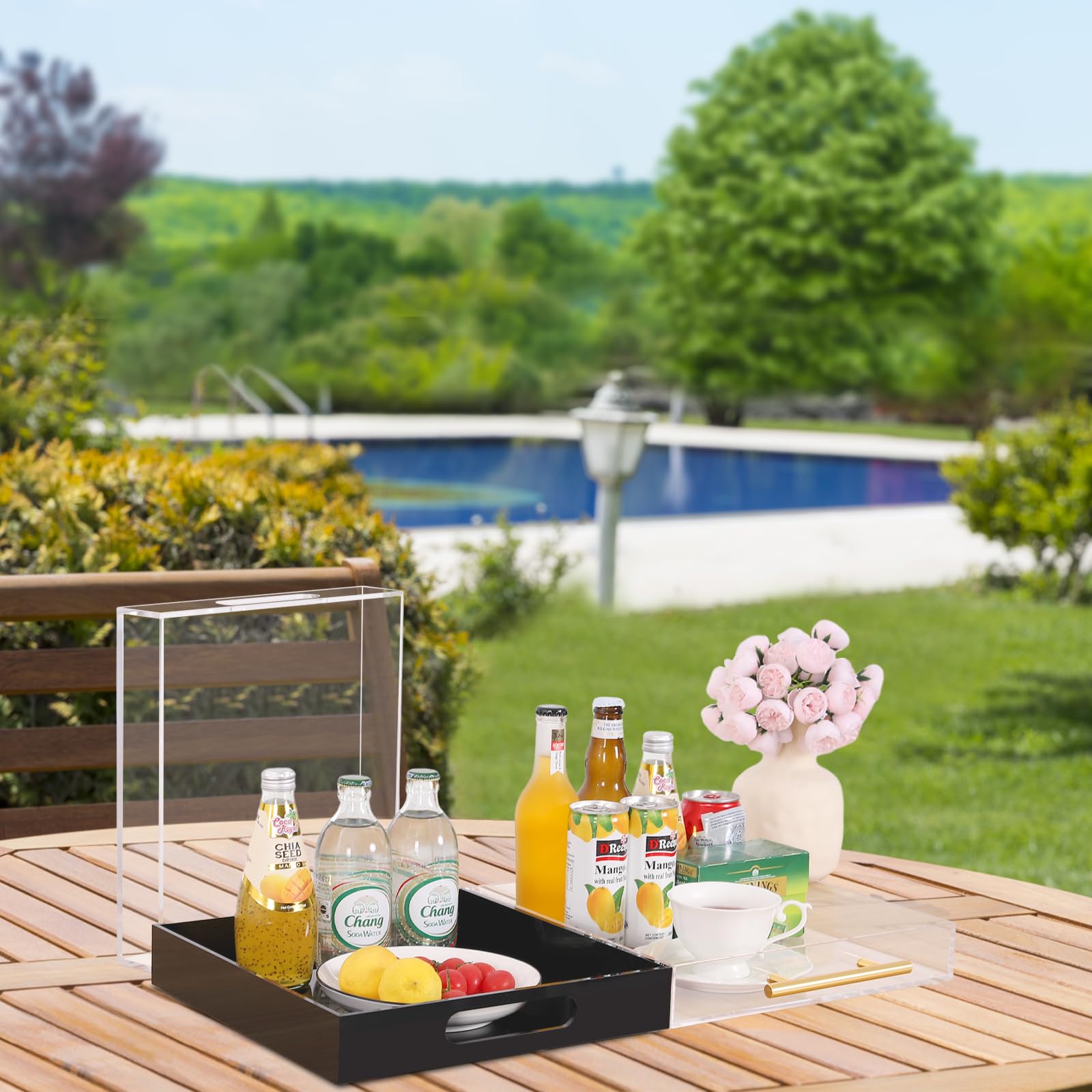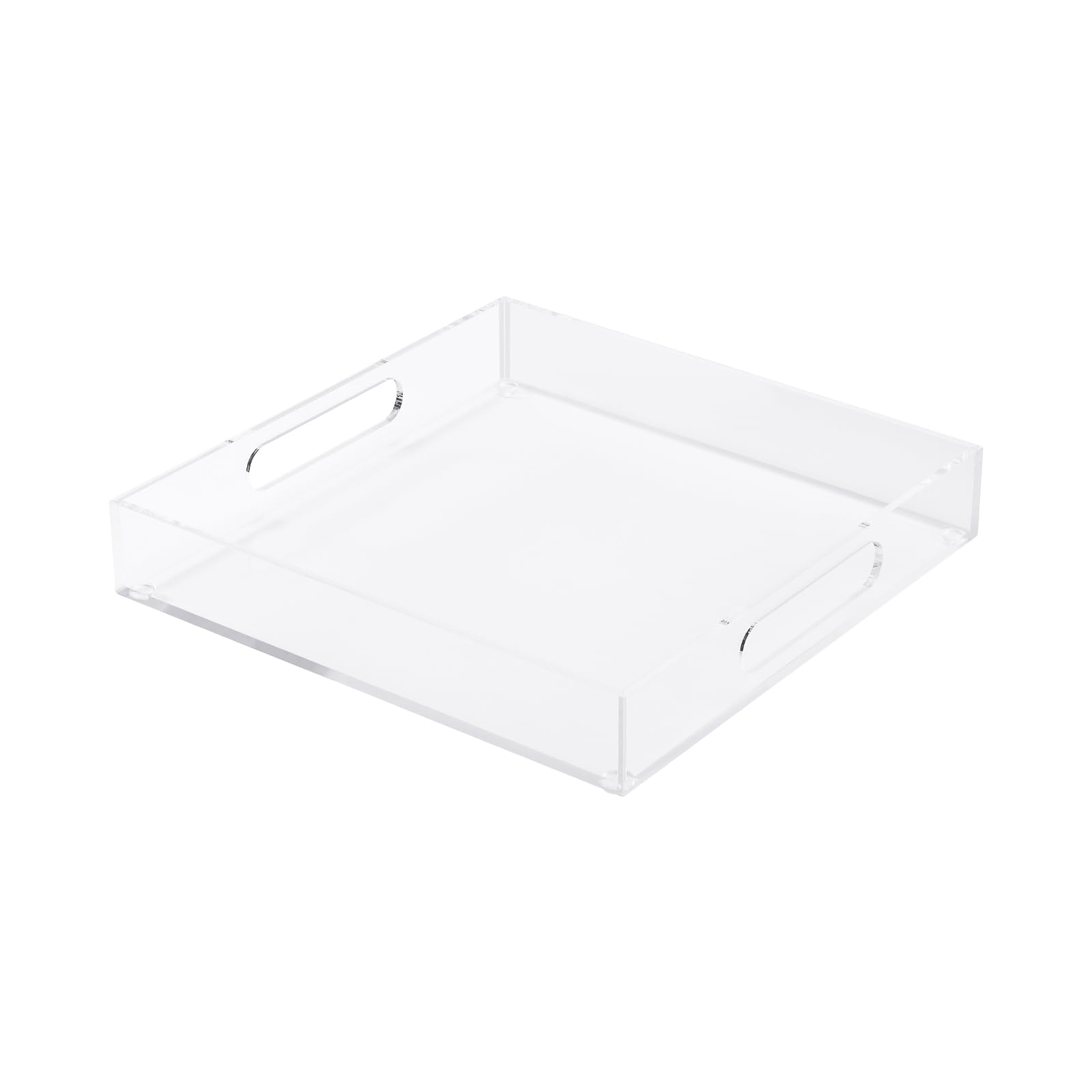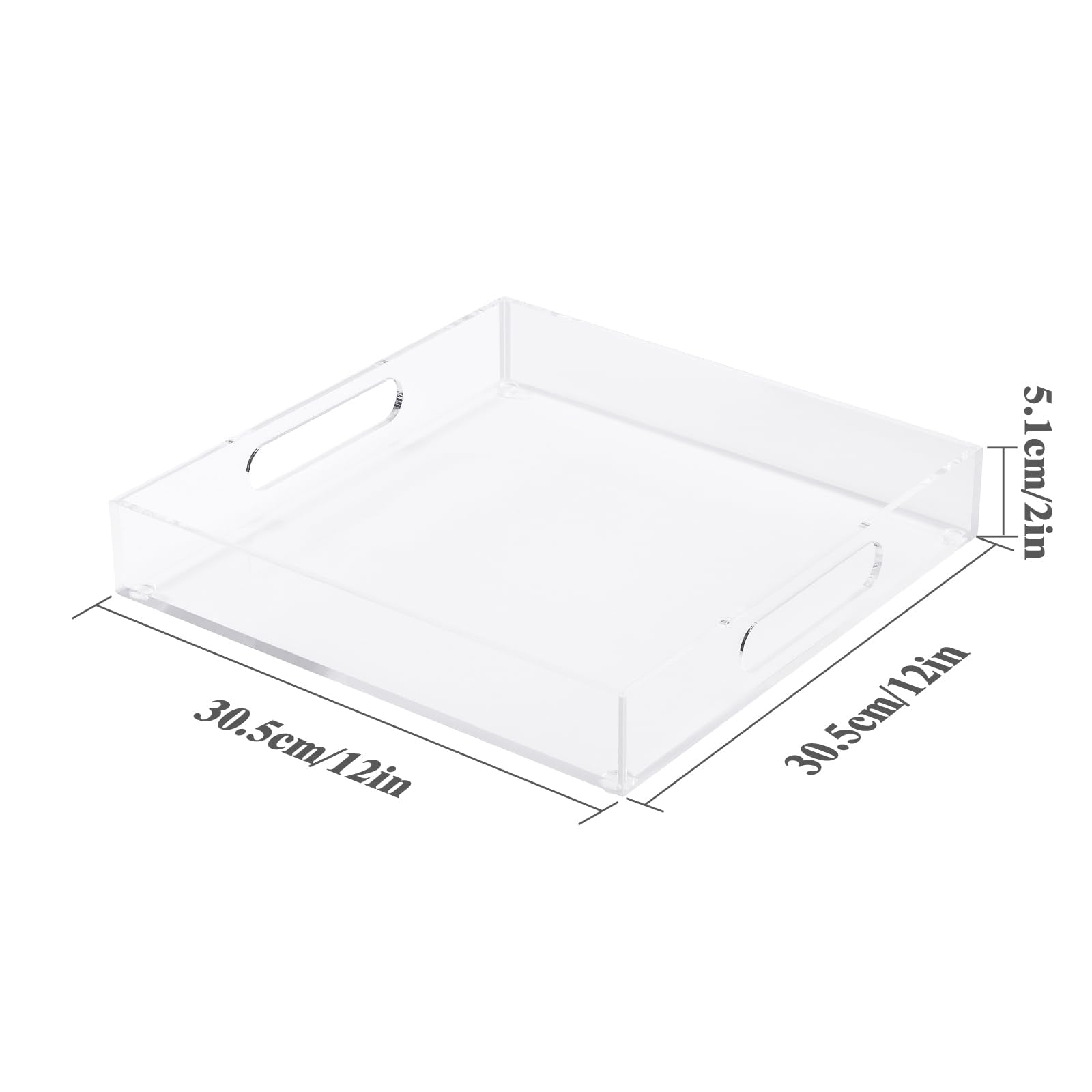 Clear Serving Tray Acrylic Tray Organizer, Ottoman Serving Tray for Coffee Table, Bathroom, Vanity, TV Table, Plastic Plastic for Eating 12 * 12 Inch