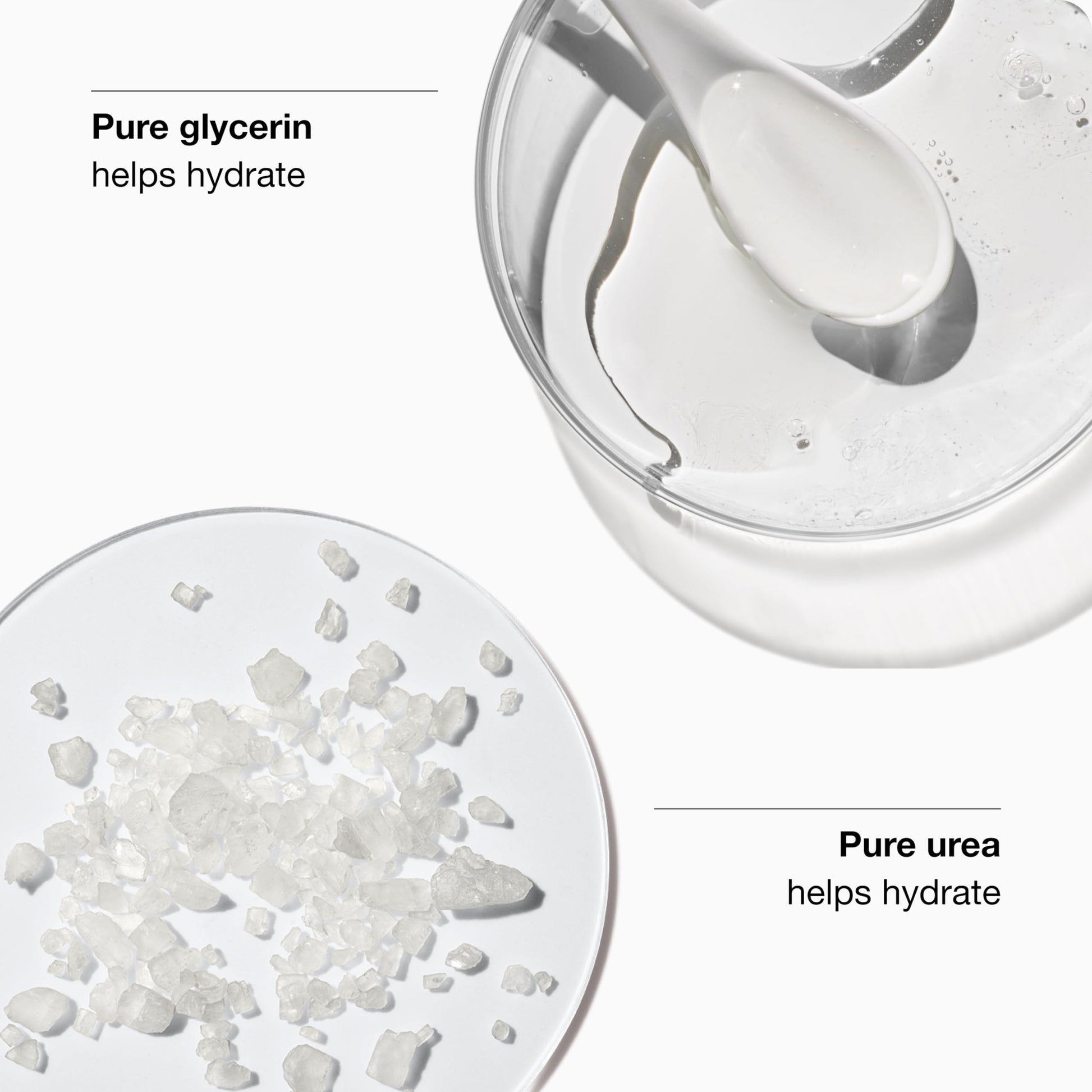 - PURE GLYCERIN + PURE UREA BOOST HYDRATION: Glycerin helps bind and retain moisture in skin. Urea helps hydrate.