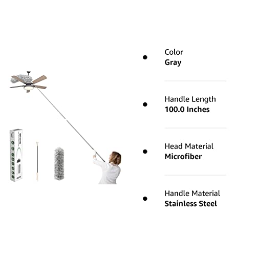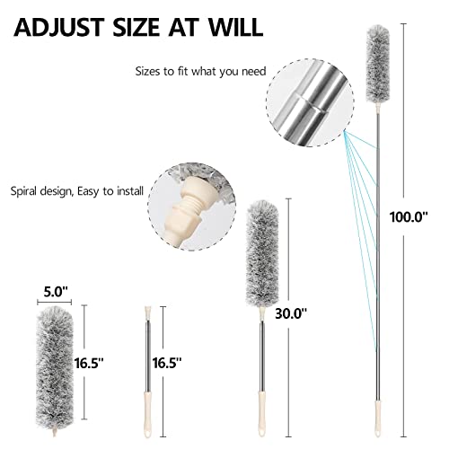 - 💪💪EXTRA LONG EXTENDABLE -- High-quality 100-inch long dusters for cleaning tools stainless steel telescopic pole, You don't need take a risk to clean the high areas, use it and extend the length of duster pole you want from 30 to 100 inches.