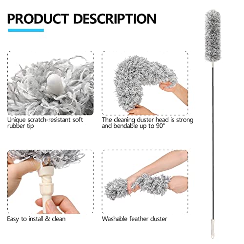 - 💪💪ELBOW & ANTI-SCRATCH DESIGN -- The wire built into the cleaning duster head is strong and bendable up to 90°, which can be bent into cleaning all kinds of dead angles and hard-to-reach areas, And We also install a unique Scratch-Resistant Soft Rubber Tip at the top to ensure you can clean with complete peace of mind.