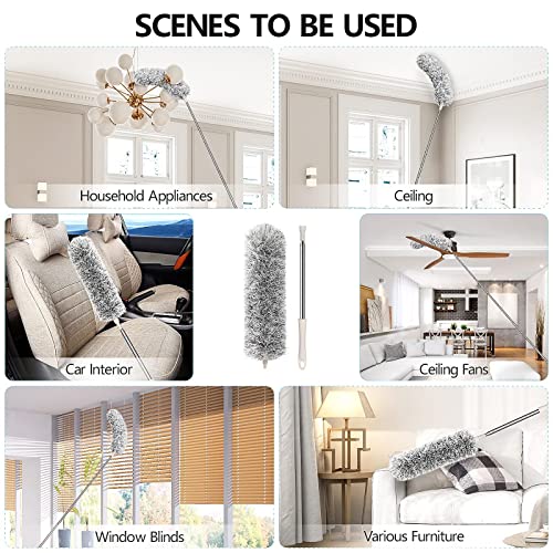 - 💪💪HIGH QUALITY -- Featuring innovative split fiber technology, which is rustproofed,sturdy and durable, light-weight, it becomes electrostatically charged as you use it, attracting dust, pollen and hairs with ease, used for household appliances, ceiling, window blinds, ceiling fans, various furniture and cars.