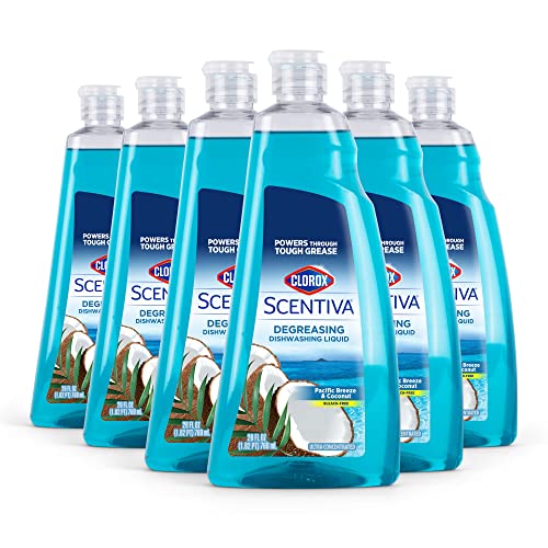 Clorox Scentiva Dishwashing Liquid Soap | Smells Great and Cuts Through Grease Fast | Quick Rinsing Formula for a Powerful Clean You Can Trust, Pacific Breeze & Coconut, 26 Oz (Pack of 6)