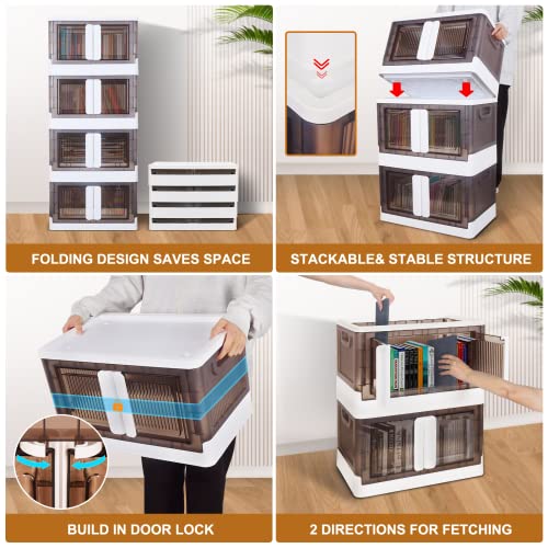 Closet Organizers and Storage 43 QT, Storage Bins with Lids 4 Pack, Stackable Collapsible Storage Bins, Storage Cabinet with Wheels, Plastic Foldabl
