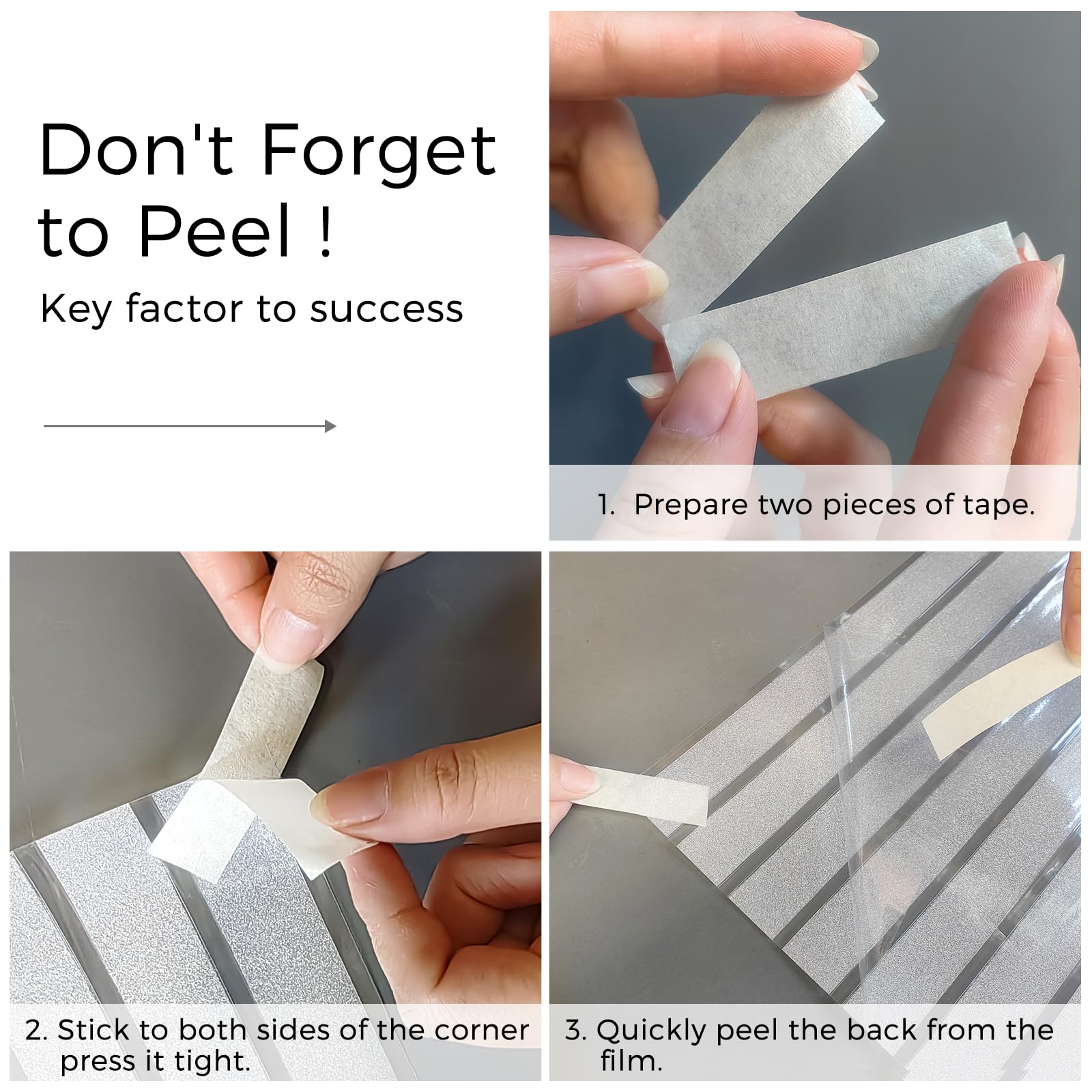 - 【Easy Installation】-- Please spray a lot of soapy water both on the window surface and privacy film back during installation for effective attachment, and PEELING OFF THE BACKING LINER is necessary. In winter, the static cling of all window films on the market is affected by low temperatures, so we recommend using soapy water and a hair dryer to ensure effective attachment.