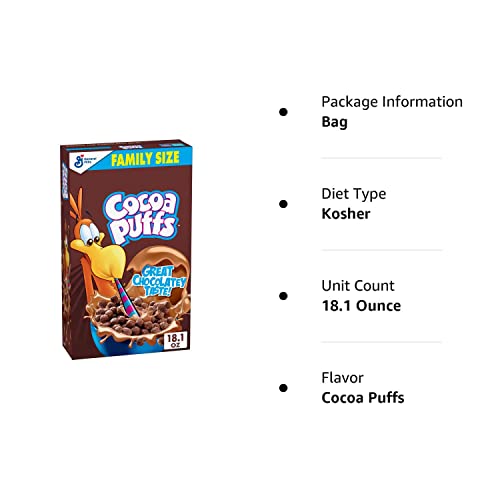 Cocoa Puffs, Chocolate Breakfast Cereal with Whole Grains, 18.1 oz