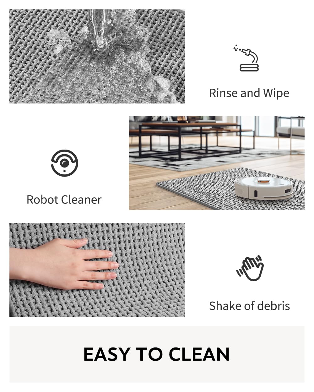 - Easy to Clean & Versatile: Rug for bathroom is easy to clean, just shake of debris or clean with a robot vacuum cleaner. For deeper cleans, rinse and wipe with water or soap, then hang and dry naturally. This water absorbing bath mat is versatile, it also can be used in other areas like bedrooms, near sinks or indoor entryways.