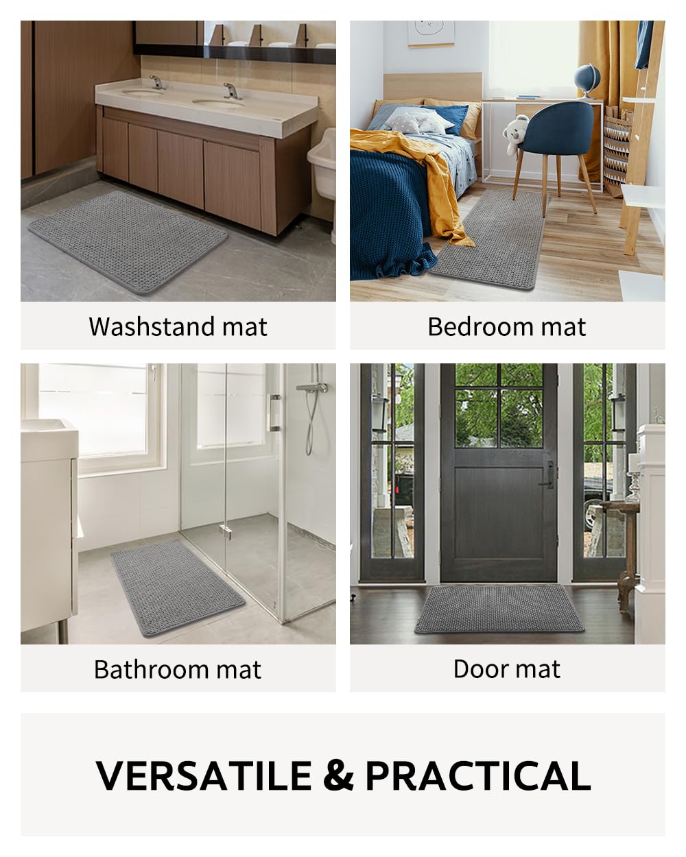 - Super Absorbent & Quick Dry: This super absorbent chenille bathroom rug acts like a sponge, rapidly pulling water into its plush fibers and drying quickly. The surface of bath mats will not always be wet even you use it frequently. Bathroom mat quick dry are Ideal for high-traffic family bathroom, without having to worry about soggy floors.