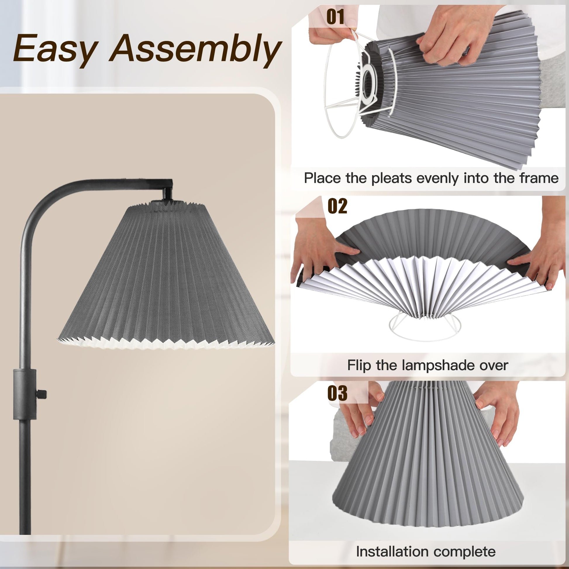 - Simple installation; All you need to do is place the pleated fabric cover evenly into the frame of the lamp and screw the pole into the base; Then you will have a romantic lamp that is elegant and timeless