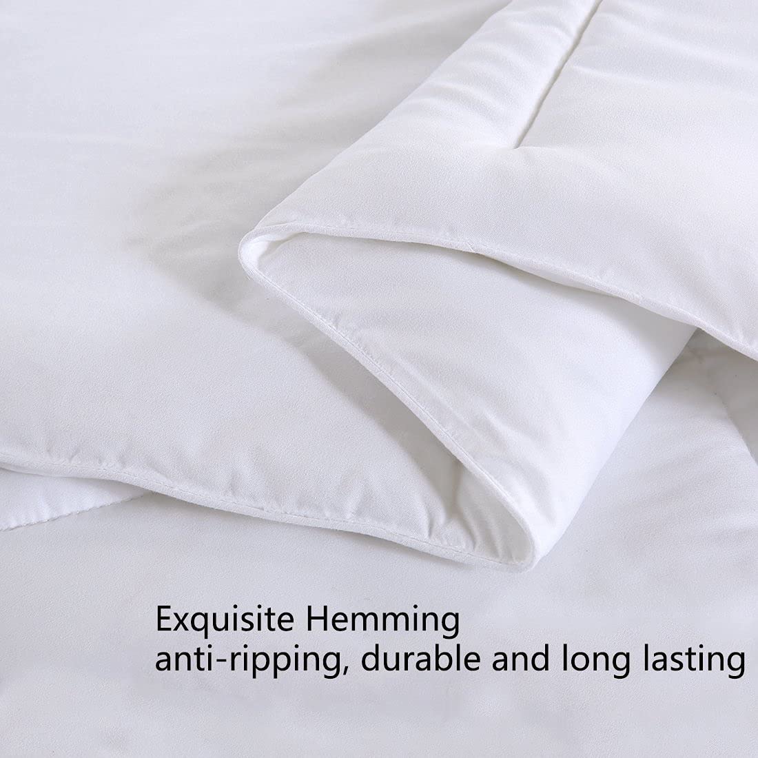 - 2.Box stitched and well distributed, with no concern for shifting or clumping filling. Exquisite hemming, no need to worry about filling leakage or loose thread. One corner tab at each side, help you secure the comforter in place.