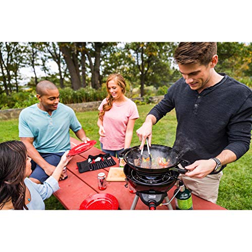 Details: Amazon.com Ideal for camping, picnicking, and even backyard use, this set of Coleman speckled dinnerware includes everything you need to eat a meal under the stars. The 24-piece set is outfitted with four 10-inch dinner plates, four 10-ounce mugs, and four 6-inch bowls, giving you and three co-campers enough containers for a main course, a side salad, and an after-dinner hot chocolate. In addition, the set comes with four knives, four spoons, and four forks, so you don't need to rely on plastic silverware when eating. Best of all, the set is durable and dishwasher-safe, with a red-speckled enamel surface that holds up to heavy use. The silverware also includes a compact carrying case to keep the cutlery bunched together. About Coleman The Coleman Company has been creating and innovating products for recreational outdoor use since W.C. Coleman started selling gasoline-powered lanterns in 1900. Inventor of the hugely popular fold-up camp stove, Coleman developed a plastic liner for his galvanized steel coolers in 1957--the birth of the modern cooler--and the company has been improving their utility and design ever since. The array of products that bear the Coleman name now includes just about everything you might need to work or play outdoors, from tents and sleeping bags to boats, backpacks, and furniture. Product Description Enjoy outdoor dining in style with the Coleman 24-Piece Enamel Dinnerware Set. Perfect for camping, picnics, and even backyard use, this classic, durable dinnerware set provides everything you need to savor a meal under the stars. Boasting a timeless red speckled design, this double-fired enamelware set is not only durable but also dishwasher-safe, standing up to repeated use. The set includes four 10-inch dinner plates, four 12-ounce coffee mugs, four 6-inch bowls, and a silverware kit with plastic-handled forks, spoons, and knives, all kept neatly together in a roll-up pouch. This comprehensive set makes family meals at BBQs, campsites, or beach trips a breeze.