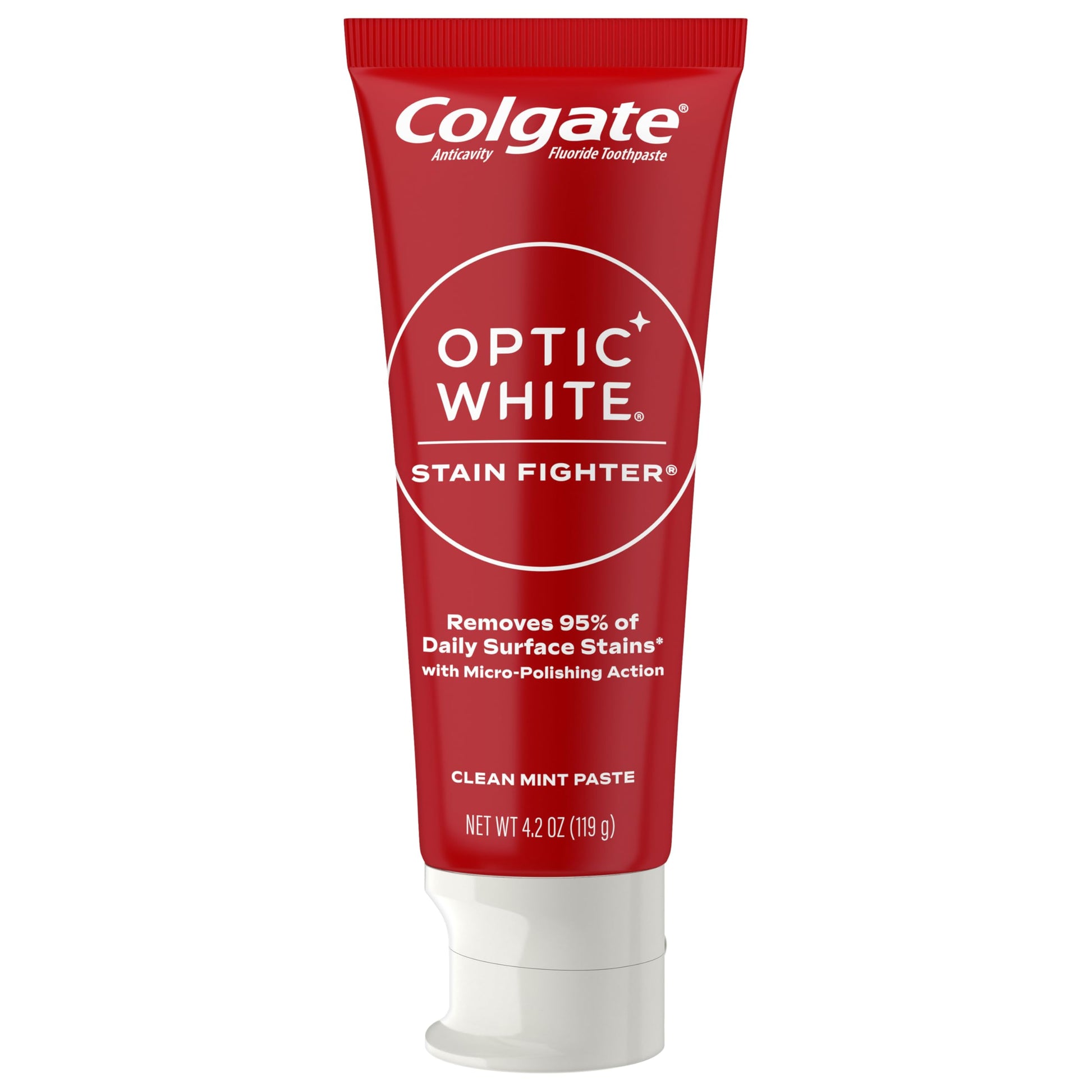 • One 4.2 oz. tube of Colgate Optic White Stain Fighter Whitening Toothpaste, Clean Mint