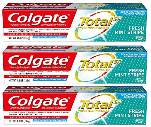 Colgate Total Toothpaste, Fresh Mint Stripe Gel, 4.8 oz (Pack of 3)