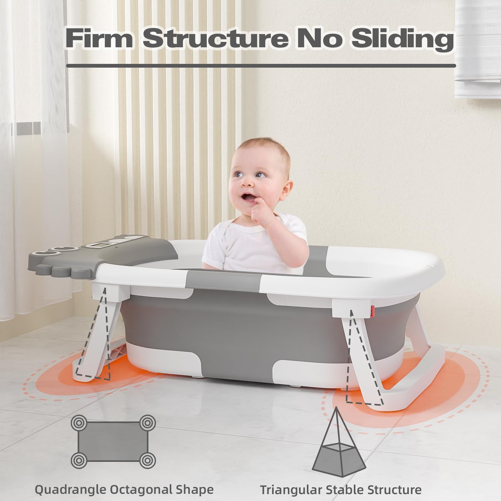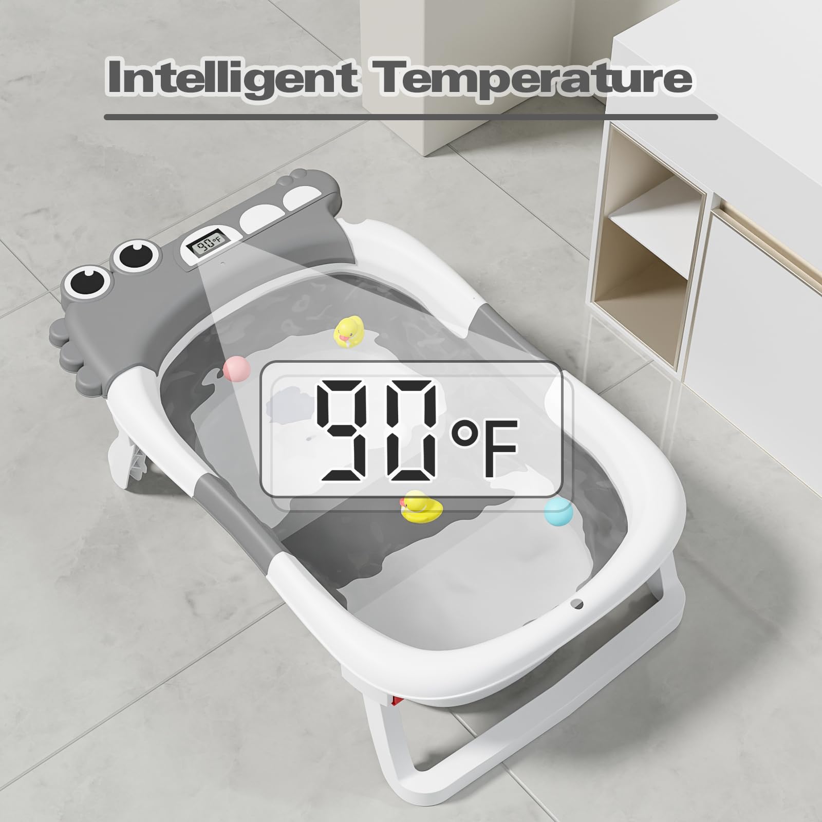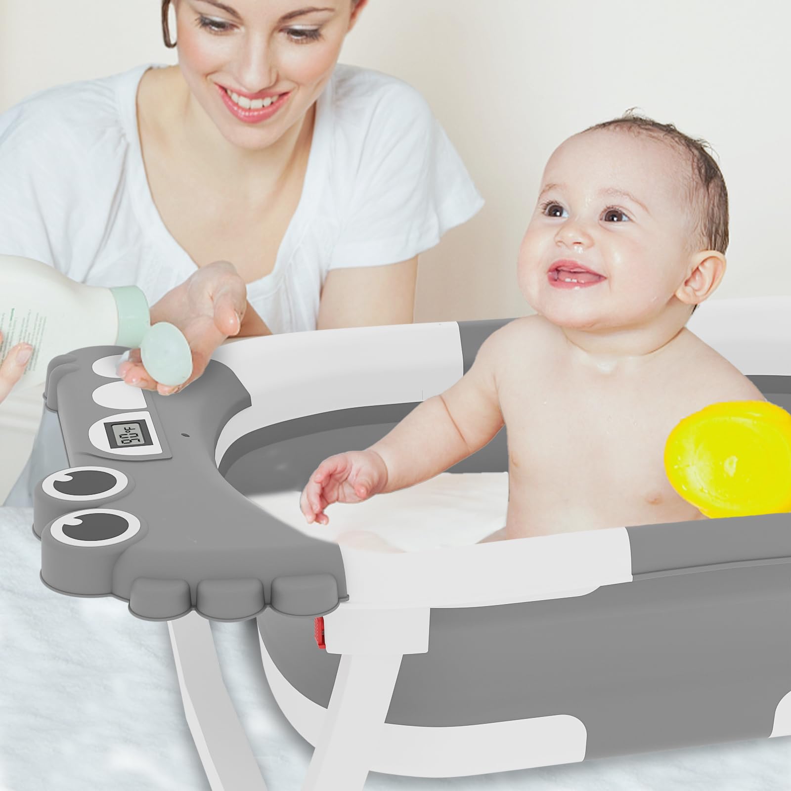 - [Temperature Control at a Glance]: No more guessing games! Our bathtub is equipped with a handy temperature sensor, so you can effortlessly adjust the water to the perfect warmth, keeping your baby safe and comfortable.