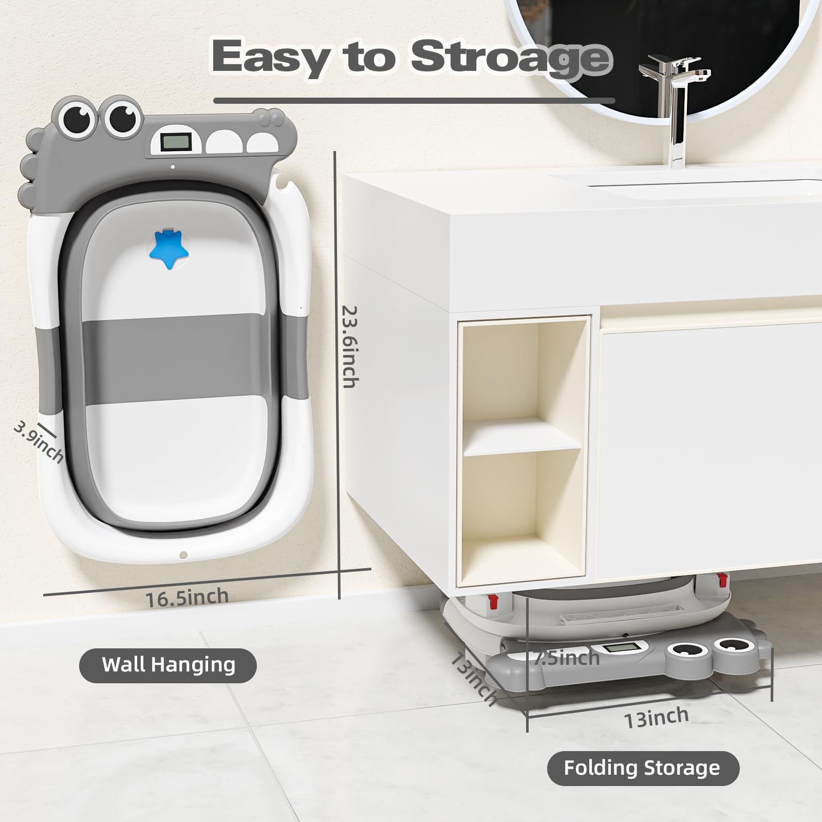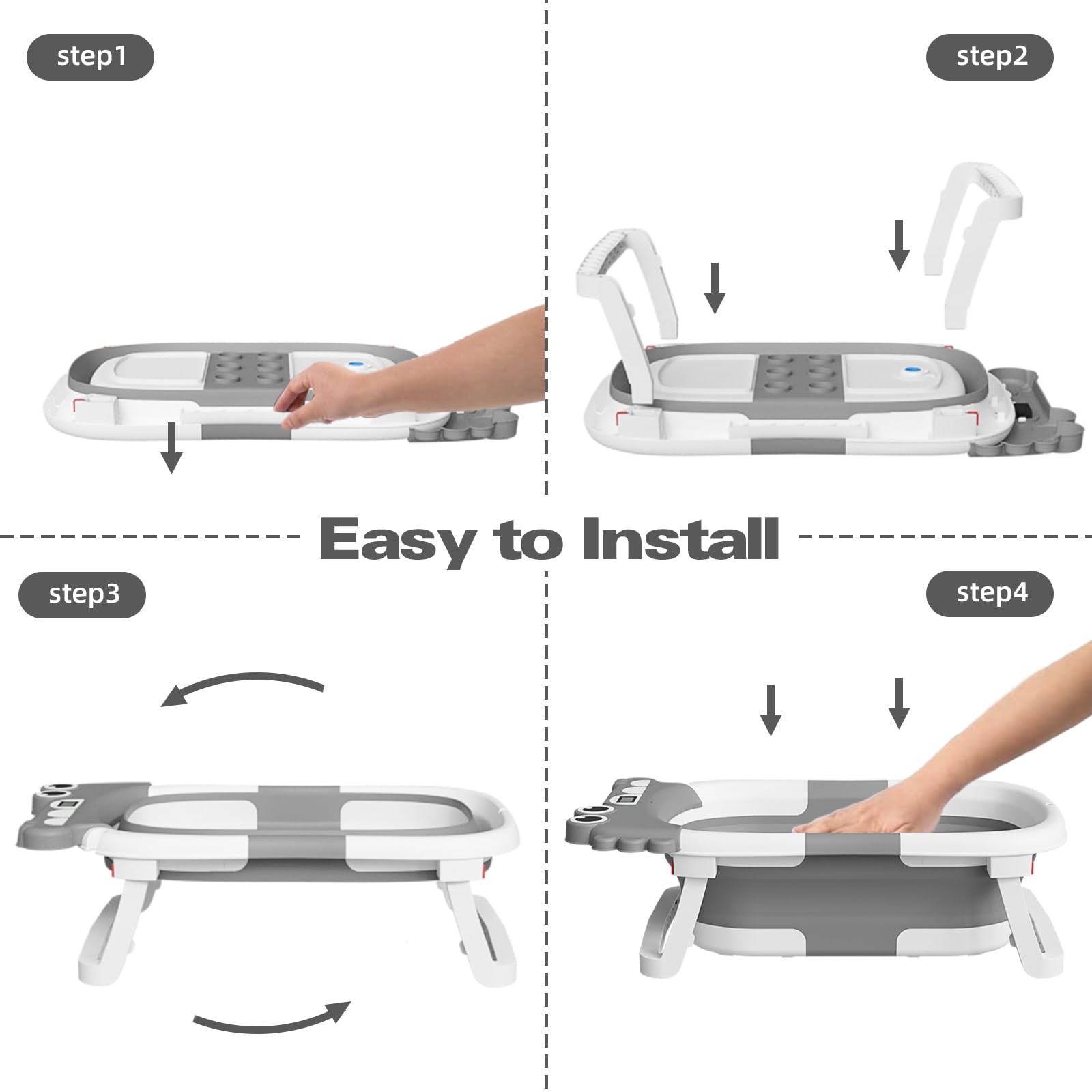 - [Compact Foldable Design]: Transform bath time into a breeze with our baby bathtub! In just three simple steps, it folds to a slim 2-inch thickness, making it easy to store without taking up precious space in your home.