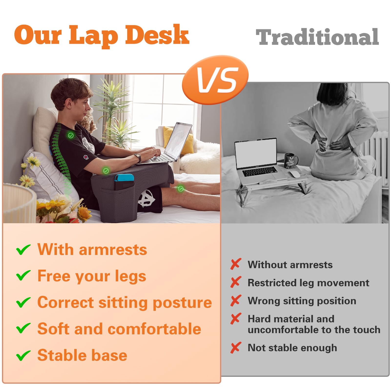 - FREE YOUR LEGS: Comehealthy laptop pillow for lap relax yourself completely when you are reading a book or working, whether you are on sofa or in bed, you can put your legs inside the groove, rest your hand elbows on top of our memory foam pillow and enjoy every minute of relaxation.