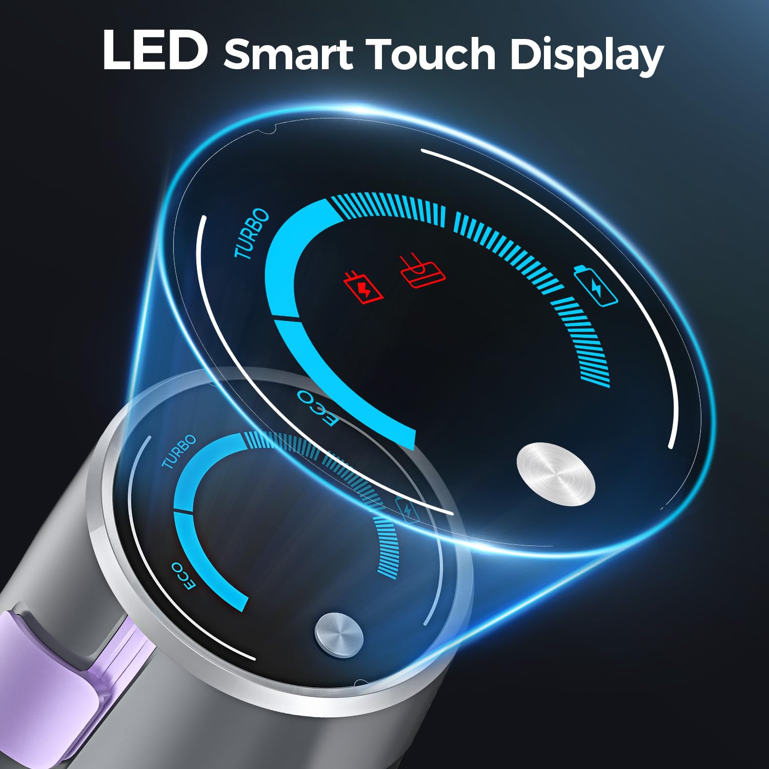 - 【LED Display】Cordless Vacuum Cleaner Has an Easy-to-read LED Screen that Tracks the Remaining Battery Life and Working Status of The Vacuum Cleaner in Real Time. The Concise, High-definition, and Extra-large Icons Are Perfect for Nearsighted People and Middle-aged and Elderly People.