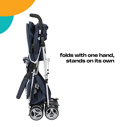 Details: Getting around is easy-breezy with the Cosco Simple Fold Compact Stroller. Its lightweight, easy to carry, and when youre done strolling, it folds with one hand and stands on its own. Its extra-large storage basket gives parents tons of room for everything they need to haul, and foam-grip handles provide extra comfort for hands. This stroller is made using recycled materials because caring for our children includes caring for our planet.