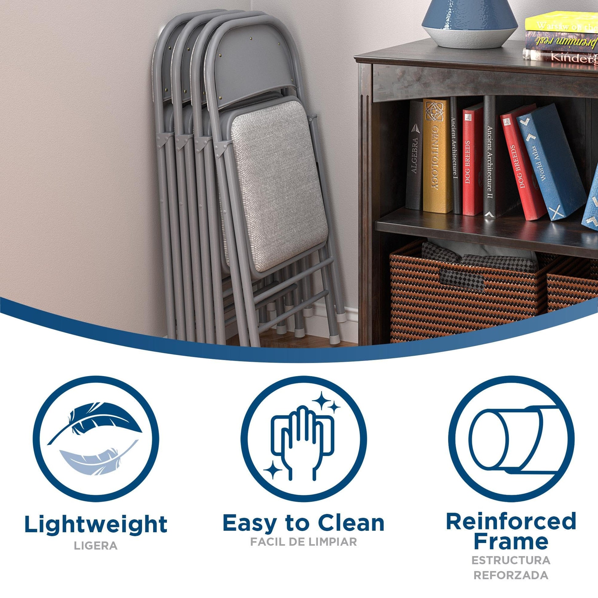- Durable all-steel gray frame includes front and back leg braces. 250lbs. weight capacity rating