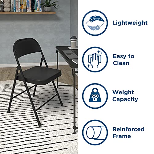 COSCO SmartFold All-Steel Folding Chair, 4-Pack, Black
