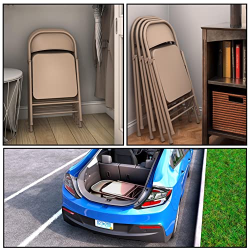 CoscoProducts COSCO SmartFold All-Steel Folding Chair, 4-Pack, Antique Linen