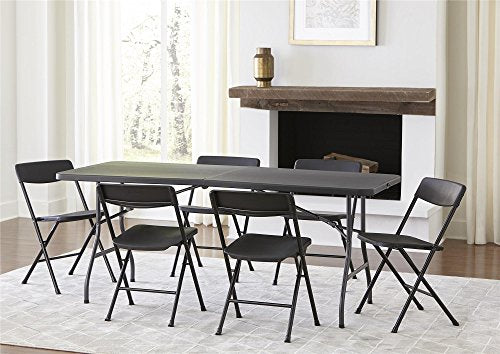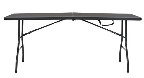 CoscoProducts Deluxe 6 foot x 30 inch Fold-in-Half Blow Molded Folding Table, Black