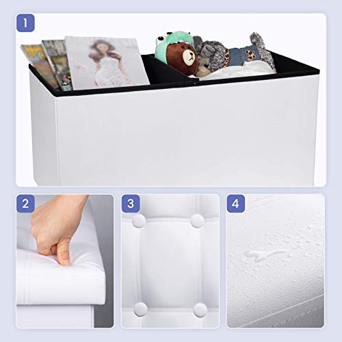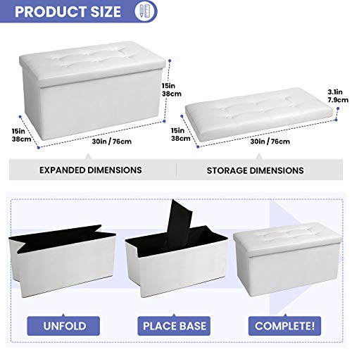 COSYLAND Ottoman Bench with Storage 30x15x15 inches White Ottoman for Room Folding Leather Ottoman Footrest Footstool Rectangle Collapsible Furniture with Lid for Bedroom Living Room