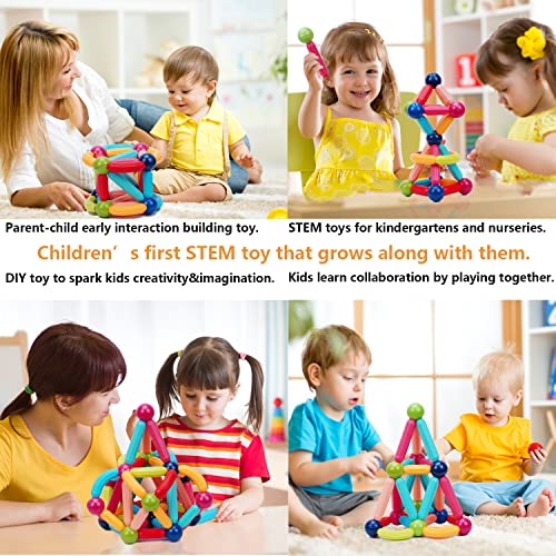 【74 PCS Magnet Toy Set Offer Unlimited Creative Fun】This magnetic building toy set includes 74 primary piece(18 metal balls, 18 long rods, 18 bend rods.30 short rods).This matching makes it possible to make variety creative 2D and 3D DIY figures,shapes and models. Stem toddler toys for toys for 3 year old boys girl birthday gift.
