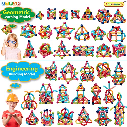 COUOMOXA 74 PCS Magnetic Blocks Sticks Construction Building, Learning Education Stem Preschool Toddler Kids Toys for 3+ Year Old, Montessori Toys for Toddlers Gifts