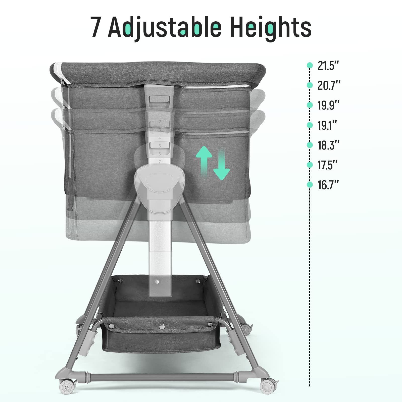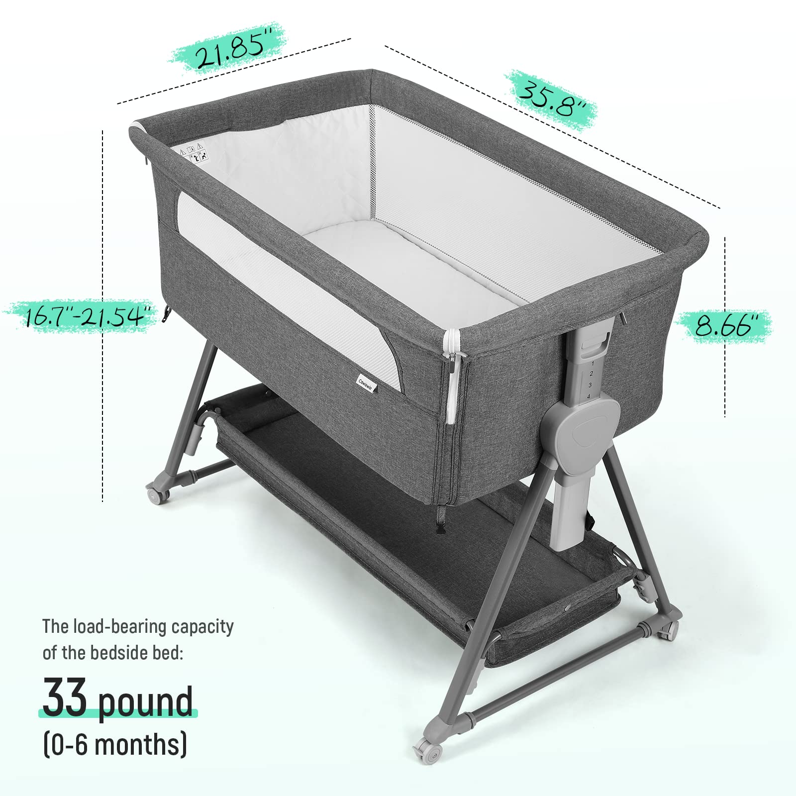 - 99% No Gap: Bassinets strictly follow the U.S. safety requirements and parents of the bed have 99% no gap, so that the mother can see the baby's condition at the turn of the head, safe care of the baby, infinite convenience mother.Suitable height for parents bed: 21.25''-26''