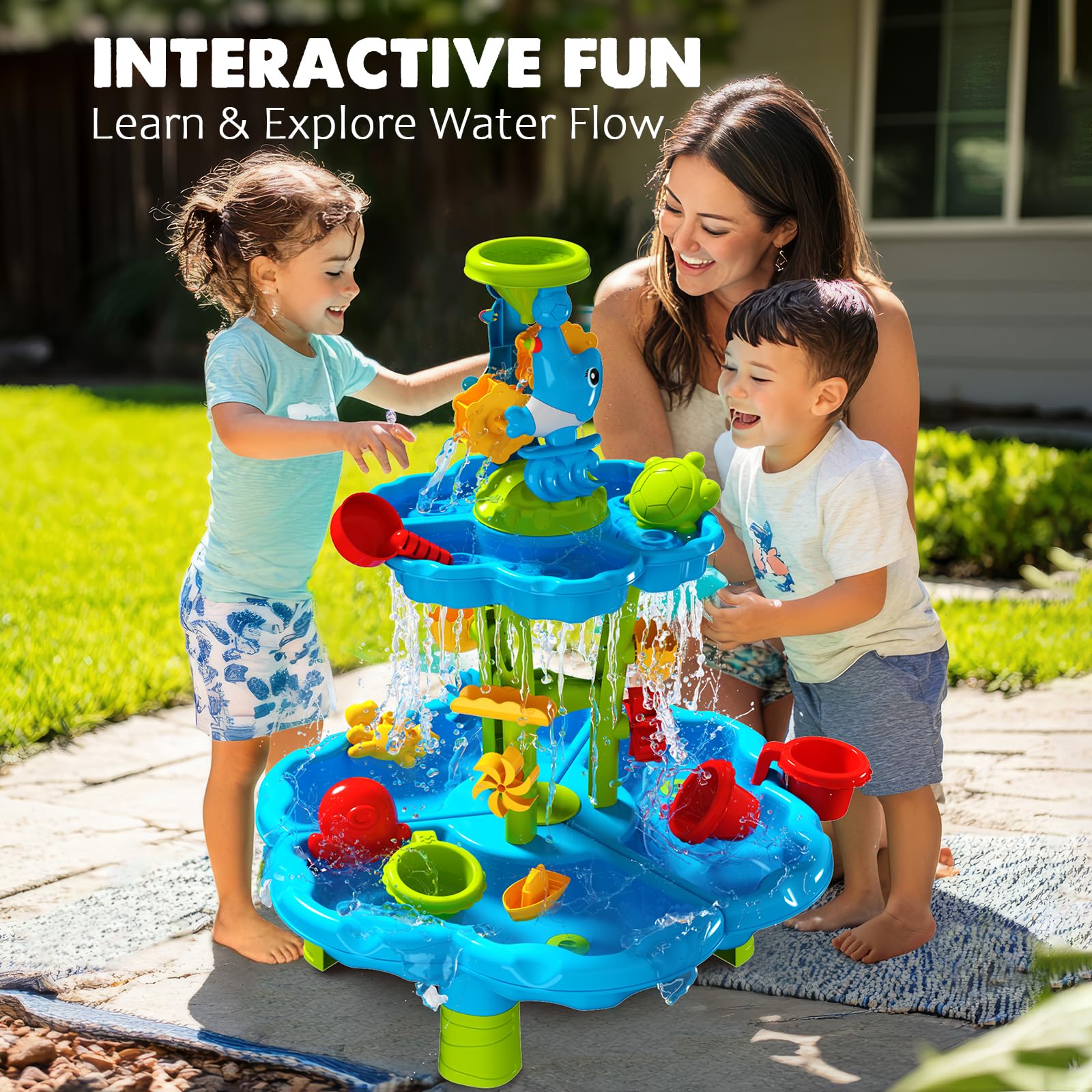 - 🌊ENDLESS WATER FUN | Dive into excitement with our water table for toddlers. Features interactive water wheel, splash bucket, and magnetic fishing toys, perfect for sensory play and outdoor fun in the backyard or poolside.