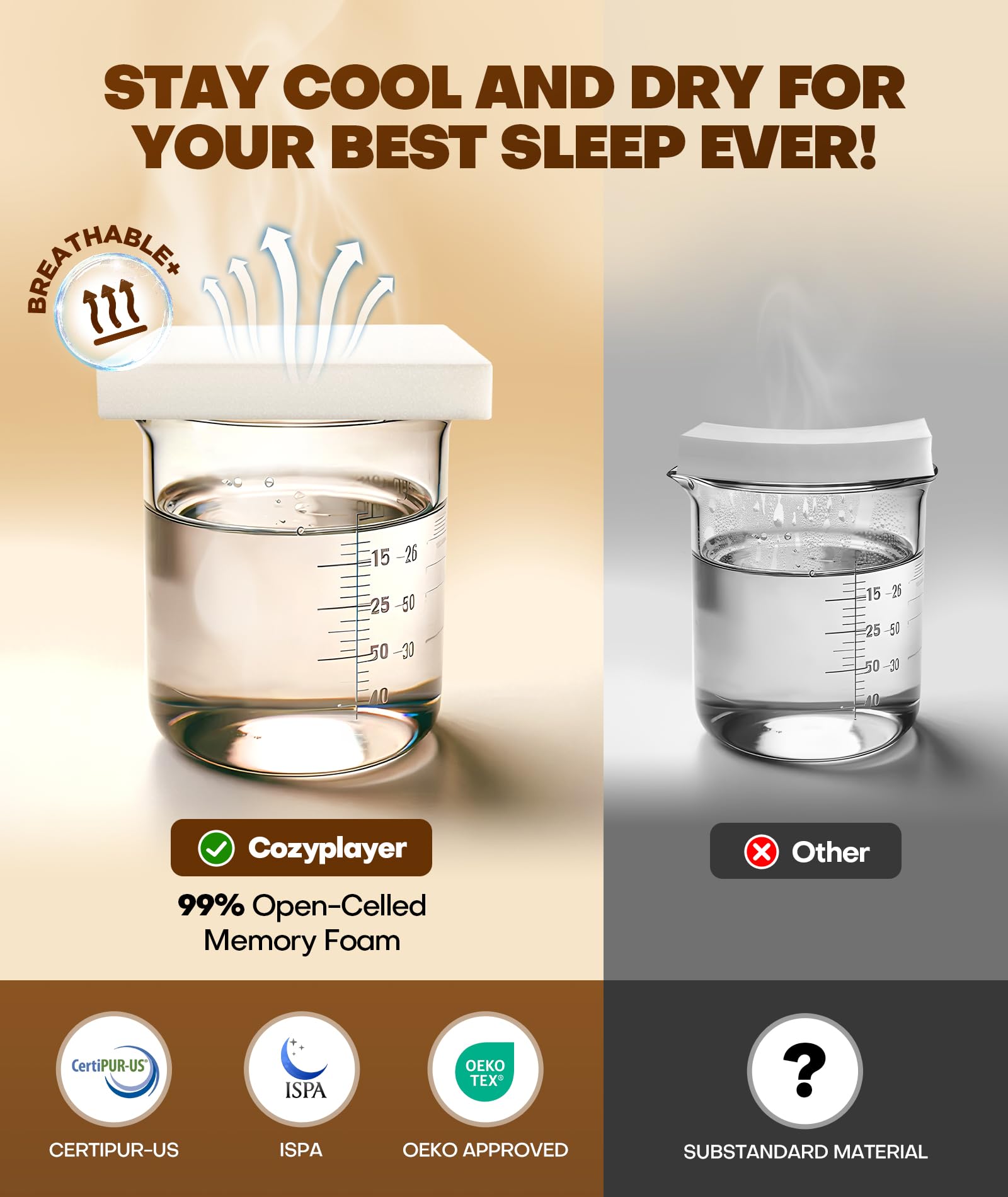 - PERSONALIZED REST, YOUR BEST MATCH! Our cooling pillow thoughtfully widens the sleep and armrest areas, offering 30% more surface area than other cervical pillows. Whether you sleep on your side, back, or stomach, you'll be fully enveloped in comfort, extending your deep sleep duration effectively. Additionally, our support pillow is certified by OEKO-TEX, CertiPUR-US, and ISPA, ensuring it is non-toxic and odorless, Ensuring a healthy sleep environment. Note: Do not wash the memory foam core.