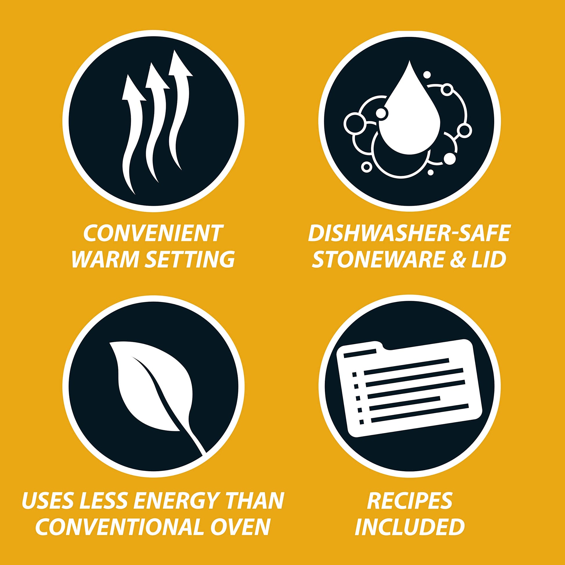 - One pot cooking means there are less dishes to clean, plus the lid and removable stoneware are dishwasher safe. Removable oval stoneware