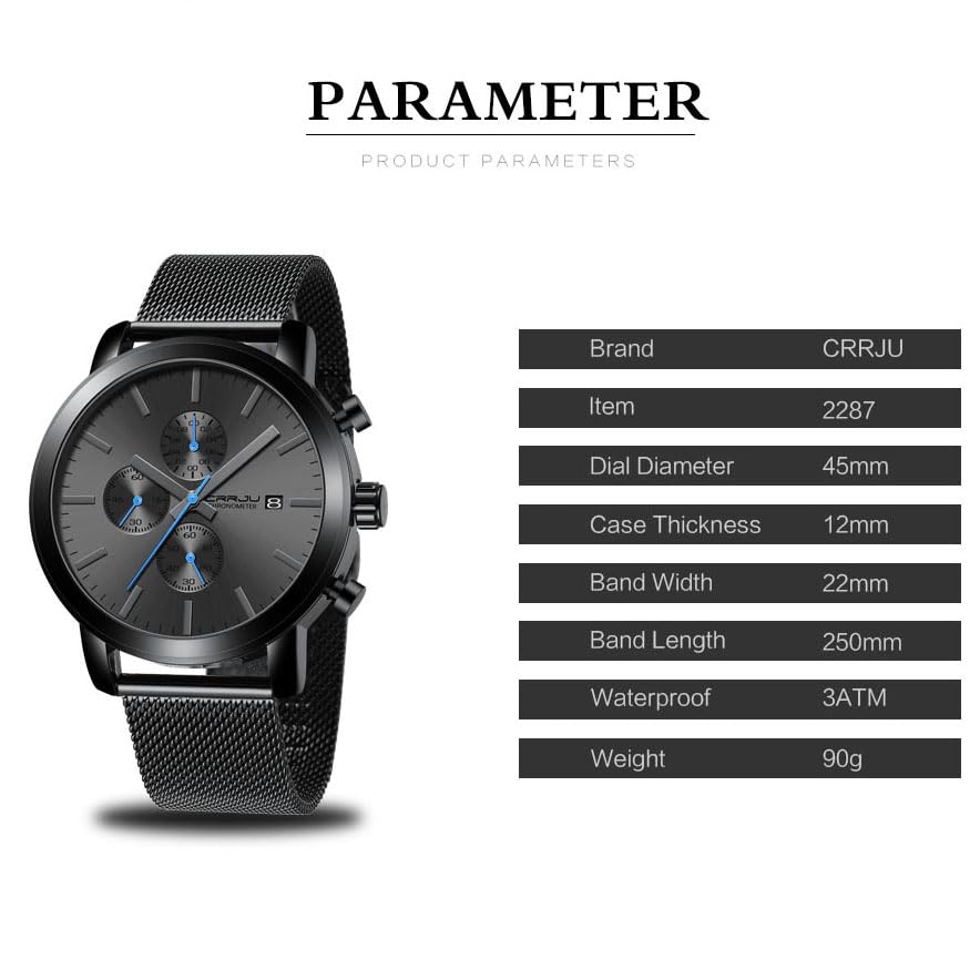 - PERFECT GIFT PACKAGE :with luxurious CRRJU watch box and watch tool,Warranty card and manual.this wristwatch is a intimate gift for yourself or for that special someone