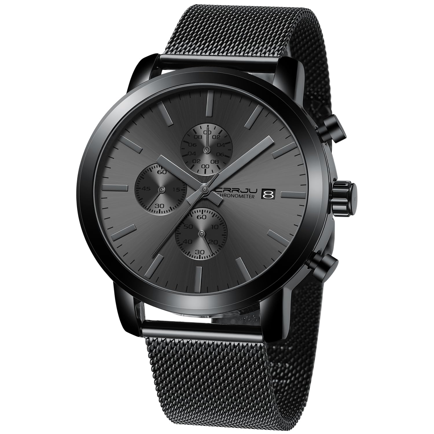 - UNIQUE ELEGANT DESIGN: 1/10 second,Second and Minute Chronographs;Classic Calendar;Thick 316L Black Solid Stainless Steel Band