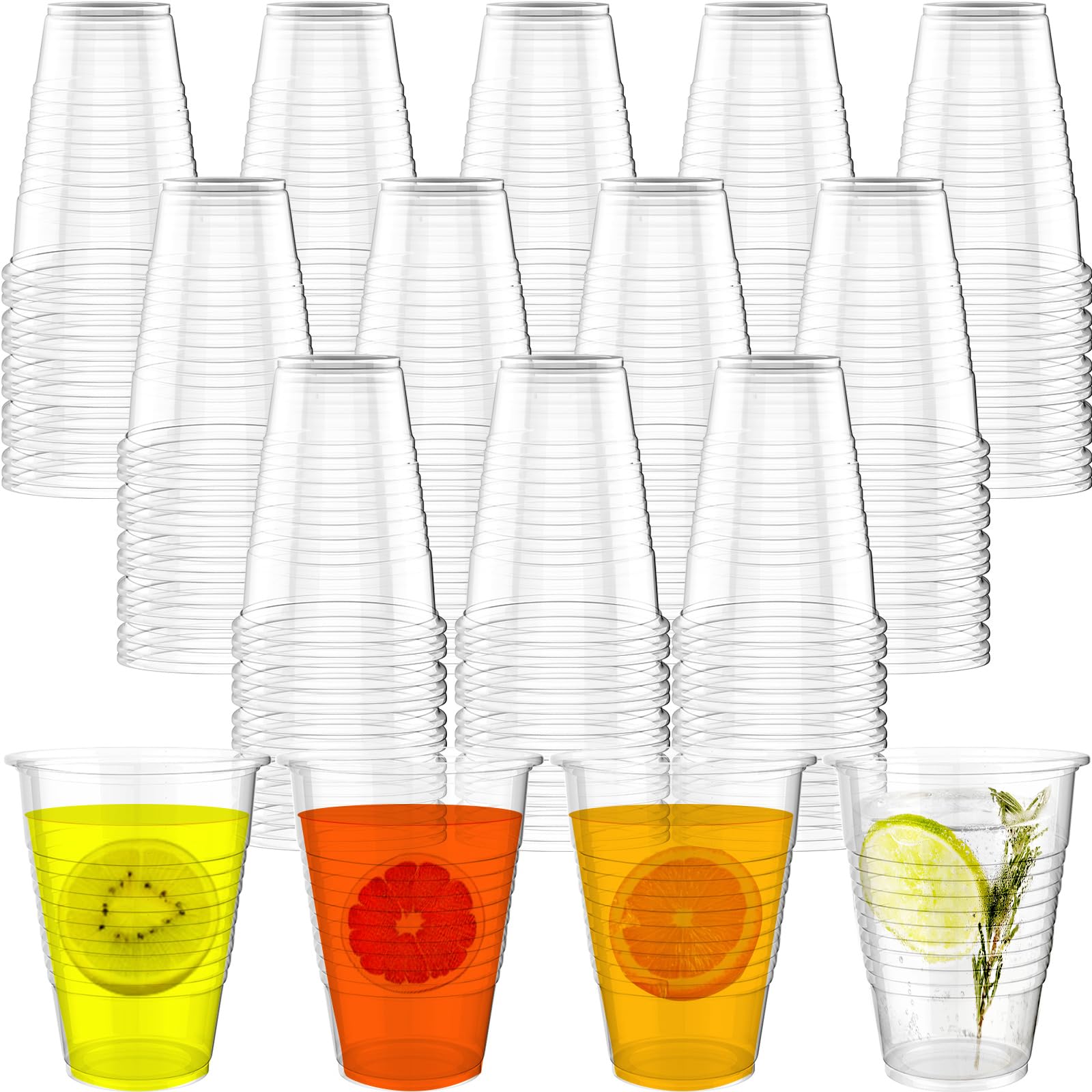 - clear Party Cups Disposable: our 16 oz clear cups are about 4 x 2.36 x 4.7 inches, with an ideal volume of 16 oz; This 16 oz plastic cup is stackable and no worry about it breaking like glass.These Disposable Cups are so fun for parties. People always get a good laugh from them.that you can use a sharpie to write on them so that people can keep track of their cup.