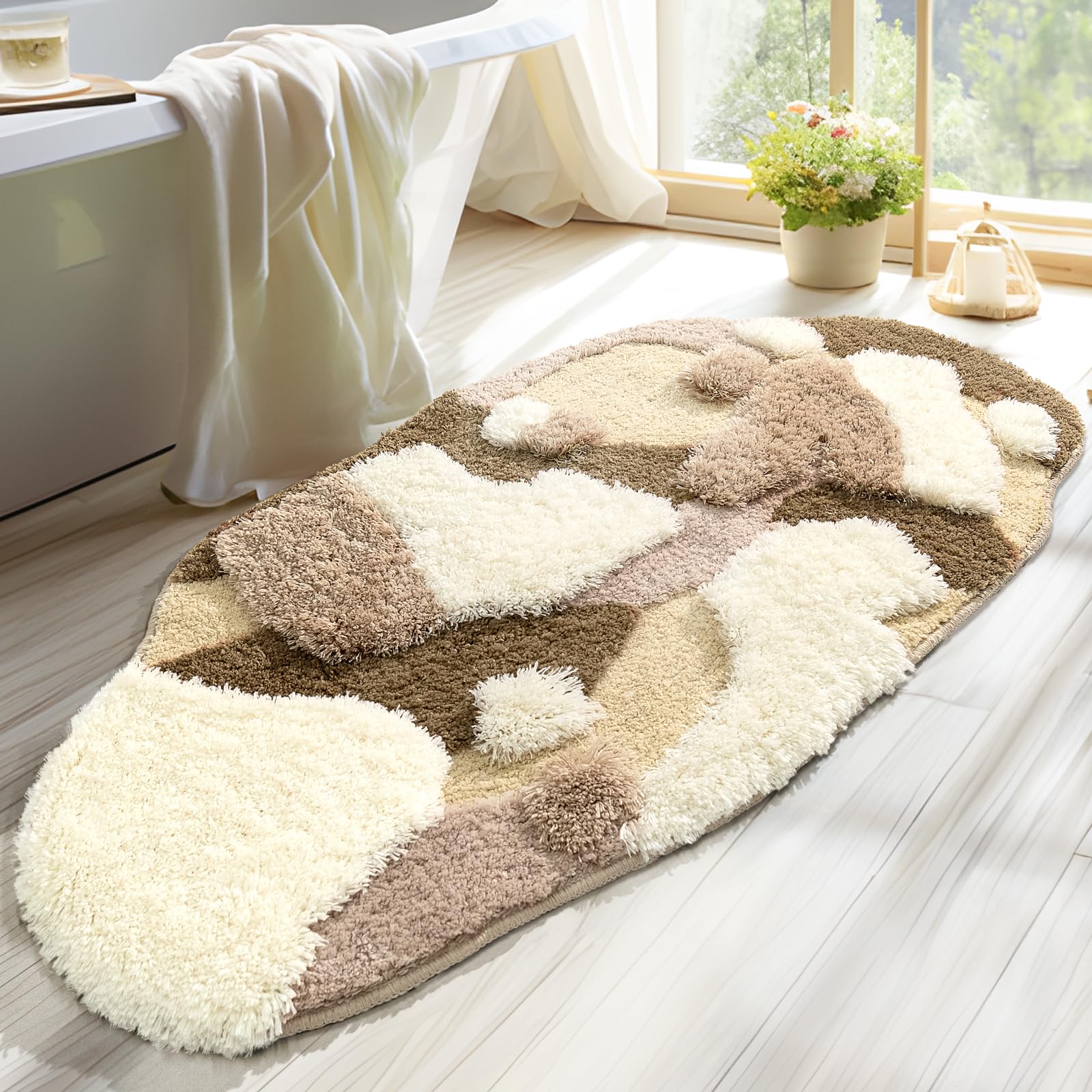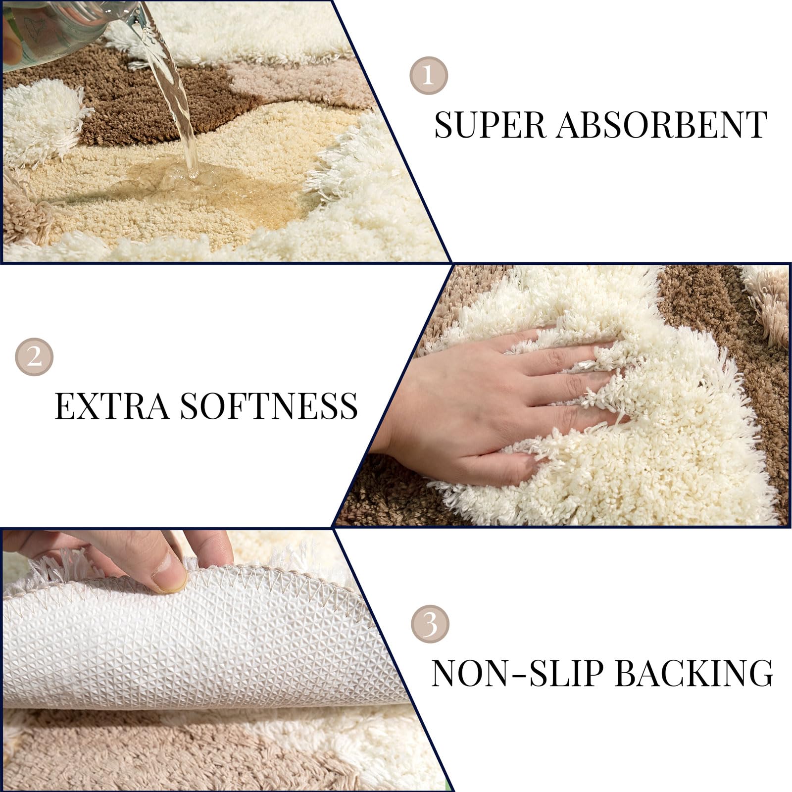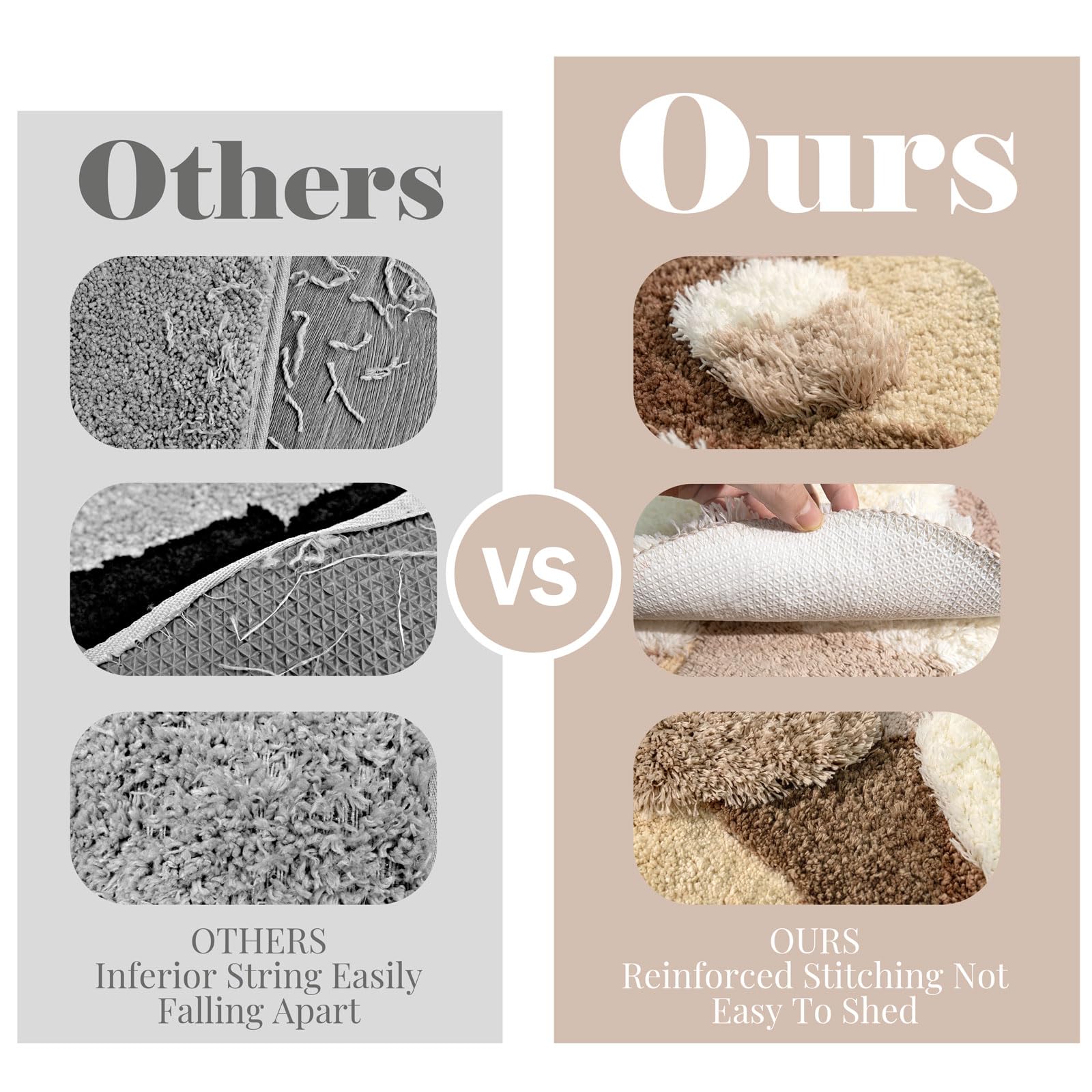 - Non-Slip Design: Our specially designed non-slip bottom ensures stability during use. Whether placed on tiled floors or near the bathtub, PLEASE PLACE THE BATHROOM RUG ON A DRY SMOOTH FLOOR.It remains securely in place, ensuring a worry-free experience for you and your loved ones.