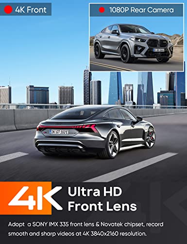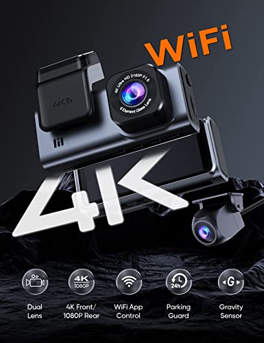 Dash Cam Front and Rear 4K+1080P WiFi Dash Camera for Cars with App, 24 Hours Parking Mode, G-Sensor, Loop Recording, Support 256GB Max