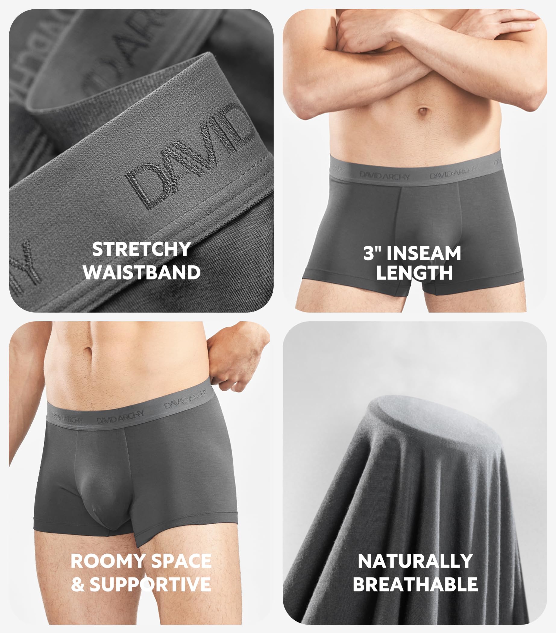 - BREATHABLE & SOFT: The ultra-soft mens trunk underwear with 95% rayon made from bamboo and 5% spandex. The david archy mens underwear is more cool than cotton due to its breathable and moisture-wicking structure, especially suitable for hot summer.