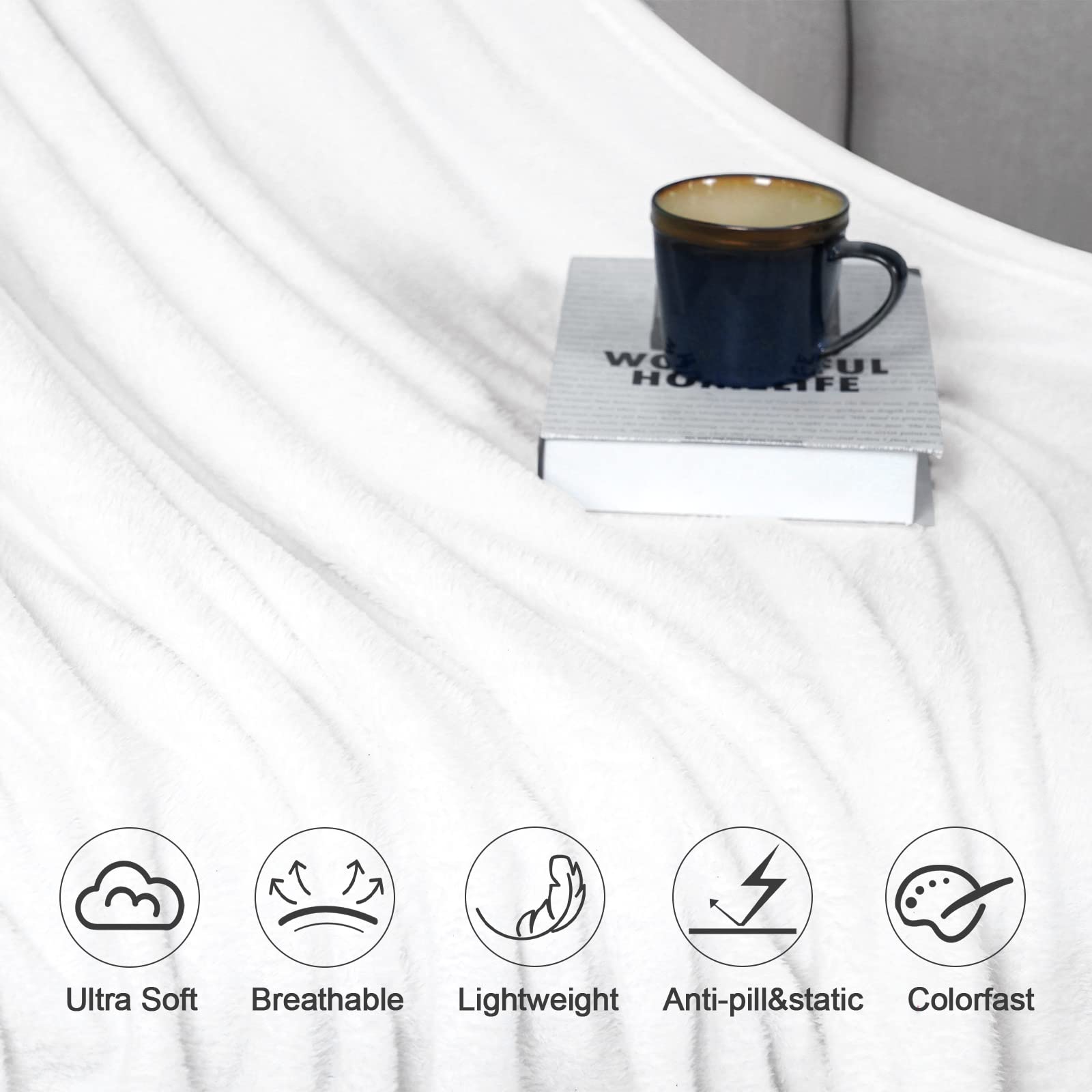 David's Home Fleece Throw Blanket,Ultra Soft More Durable Lightweight Velvety Bed Blanket,Lint-Free& No Pilling,300GSM All Season Use Luxury Plush Cozy Blanket with Wider Stitched Border,50"x60",White