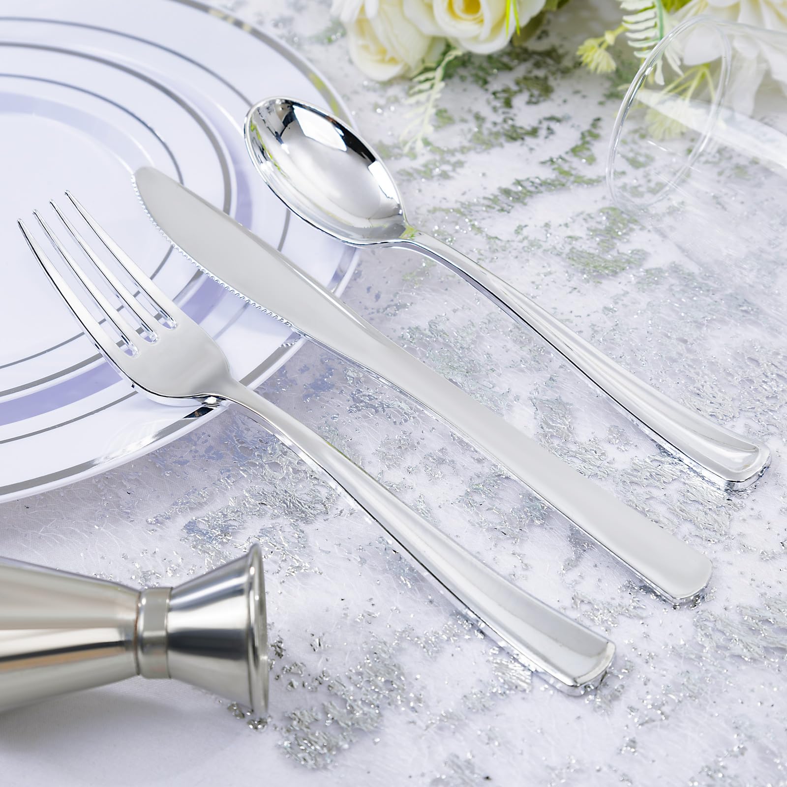DaYammi 500pcs Silver Plastic Dinnerware Set