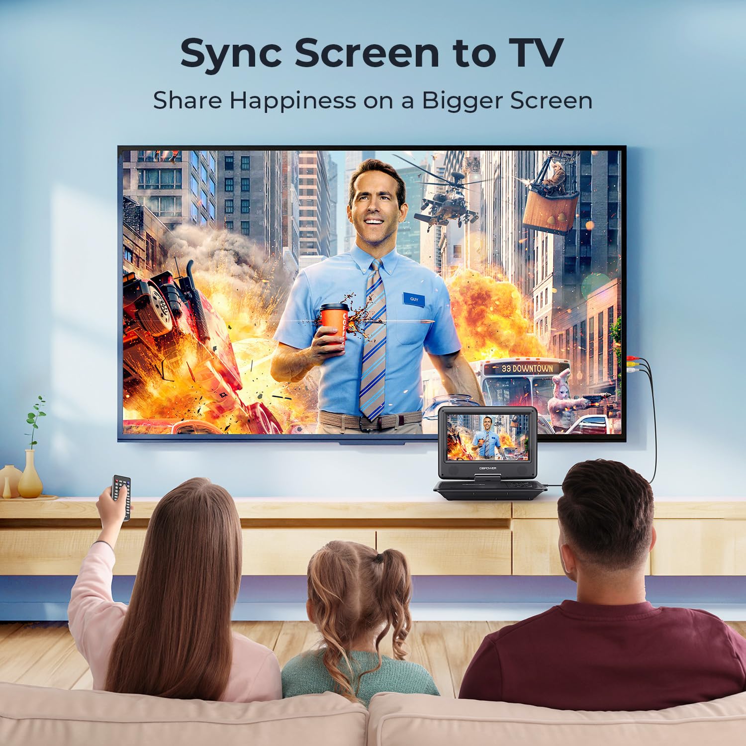 - 【SWIVELING SCREEN】9 inch screen with unique design. 800*480 Swivel Screen obtains a 270 degrees rotation and 180 degrees flip feature. DBPOWER Portable DVD Player can be swiveled as a tablet easily and mounted to the back of your car's headrest (head restraint) while you are on the road trips with your family.