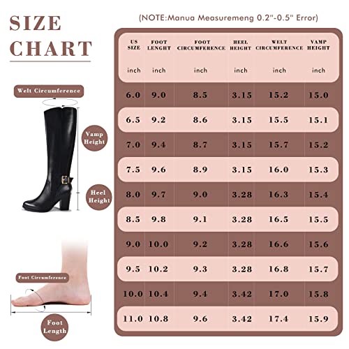 - [Fashion] Classic buckle design type,brushed heel,Almoud Toes design makes your legs looking slender and more attractive. Knee high boots show fashion sence around you.