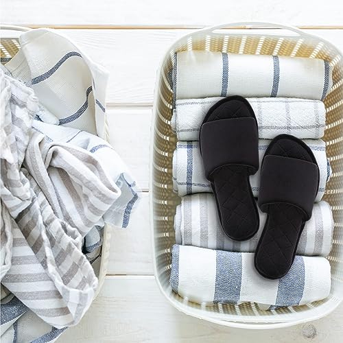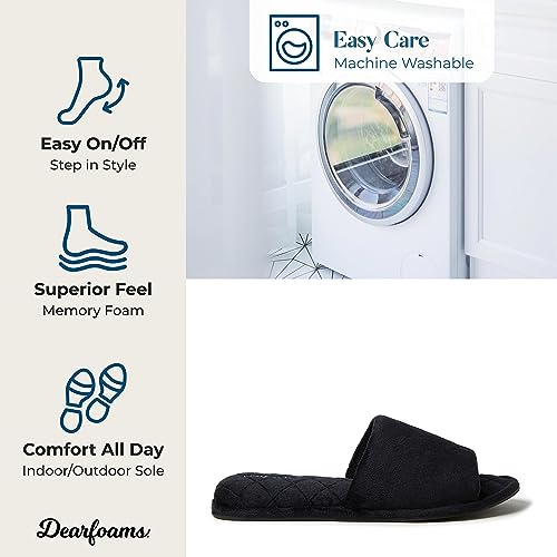Dearfoams Women's Beatrice Velour Slide Slipper, Black, Medium