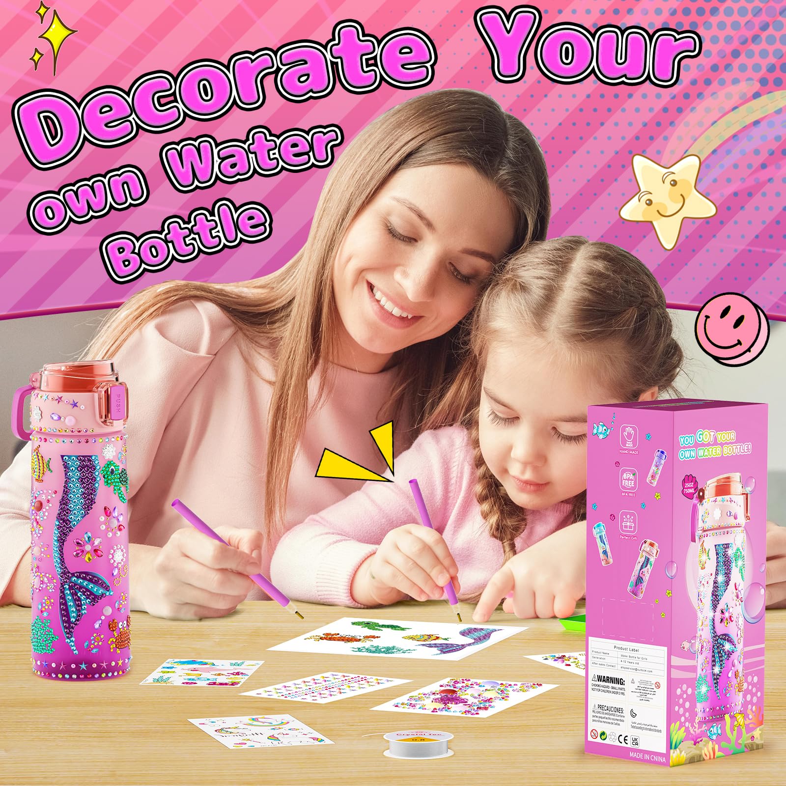 - Fun Arts And Crafts For Kids: Our DIY Mermaid Painting Crafts includes: 25OZ Water Bottle x1, Tattoo Sticker x2, 3D Diamond Sticker x3, Clay Beads Bracelet Making Kit x1, Mermaid Theme Diamond Arts and Crafts Kit x1. DIY water bottles show unique creativity, convey emotions, cultivate manual skills, and bring pleasure and relaxation. Suitable for 6+ year old girls