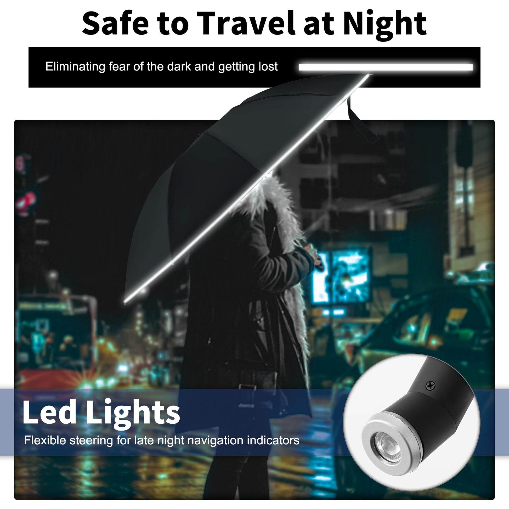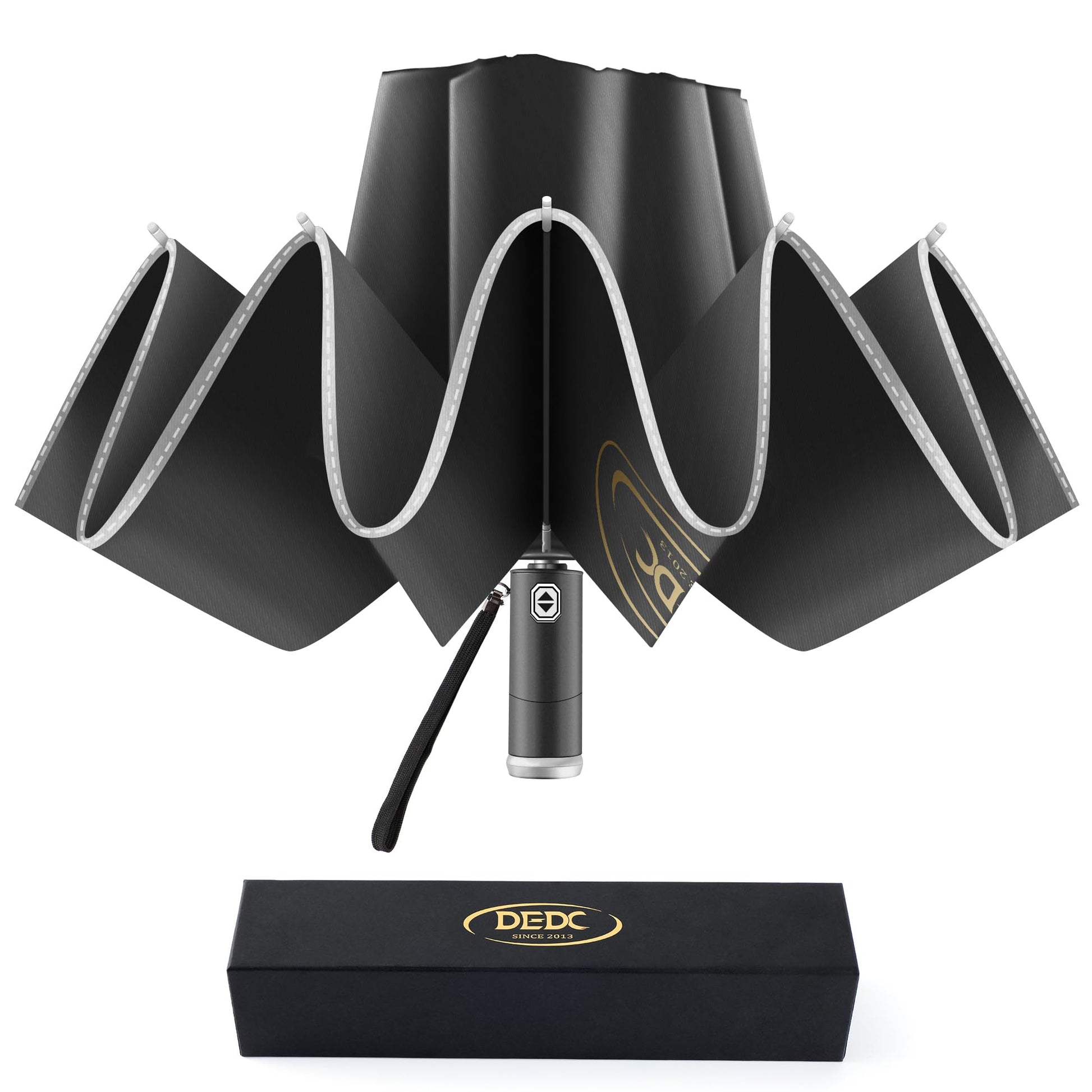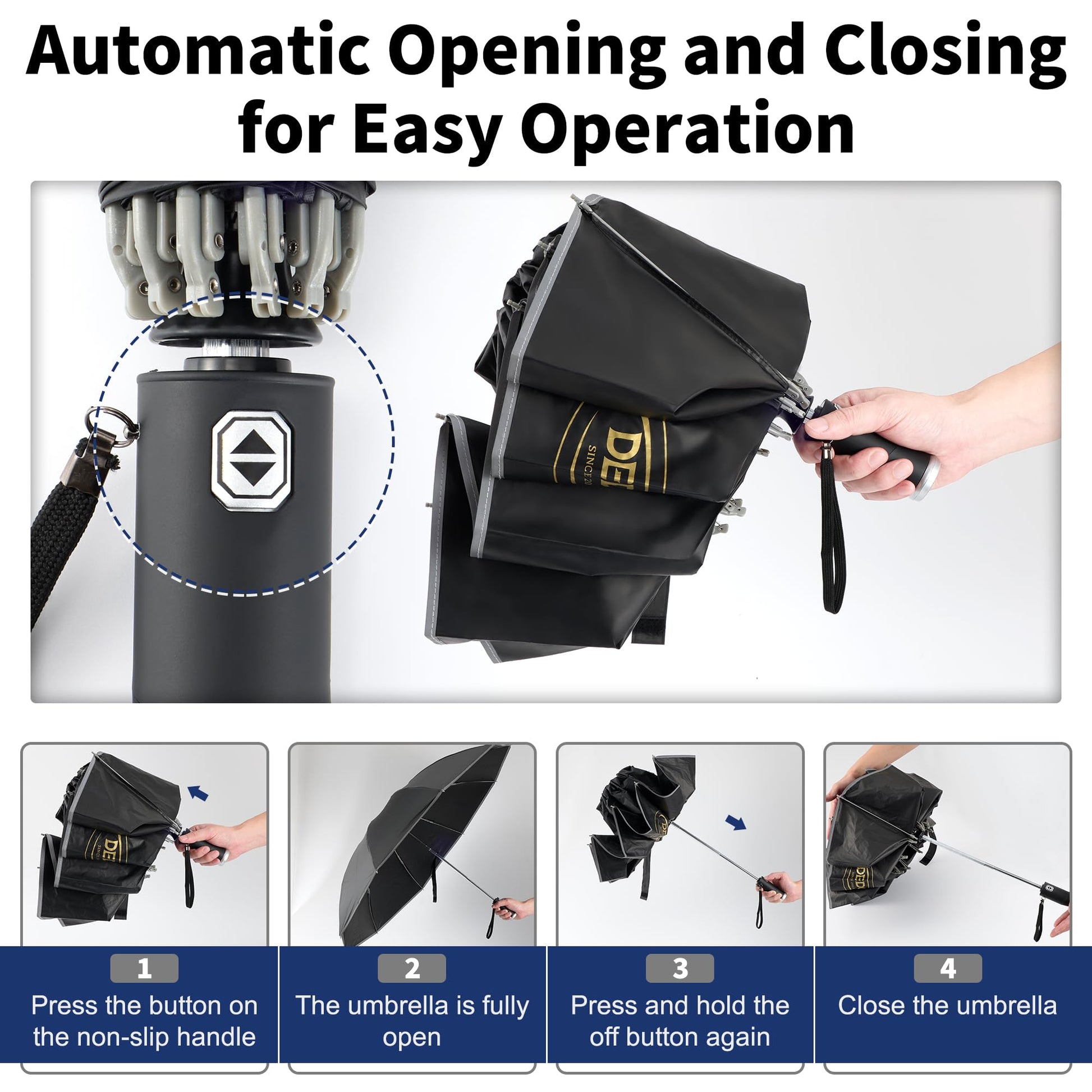 DEDC Windproof Travel Umbrella Compact Folding Rain Portable With Built-in LED light Umbrellas Automatic LightWeight for Men Women Teenage Small (Black)